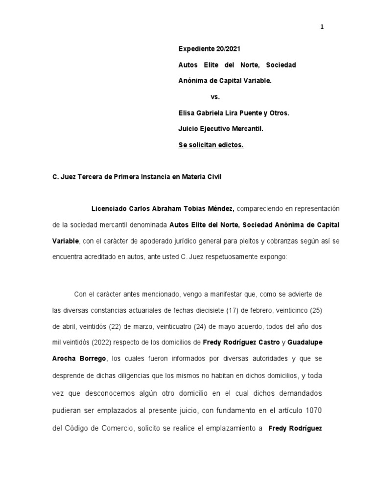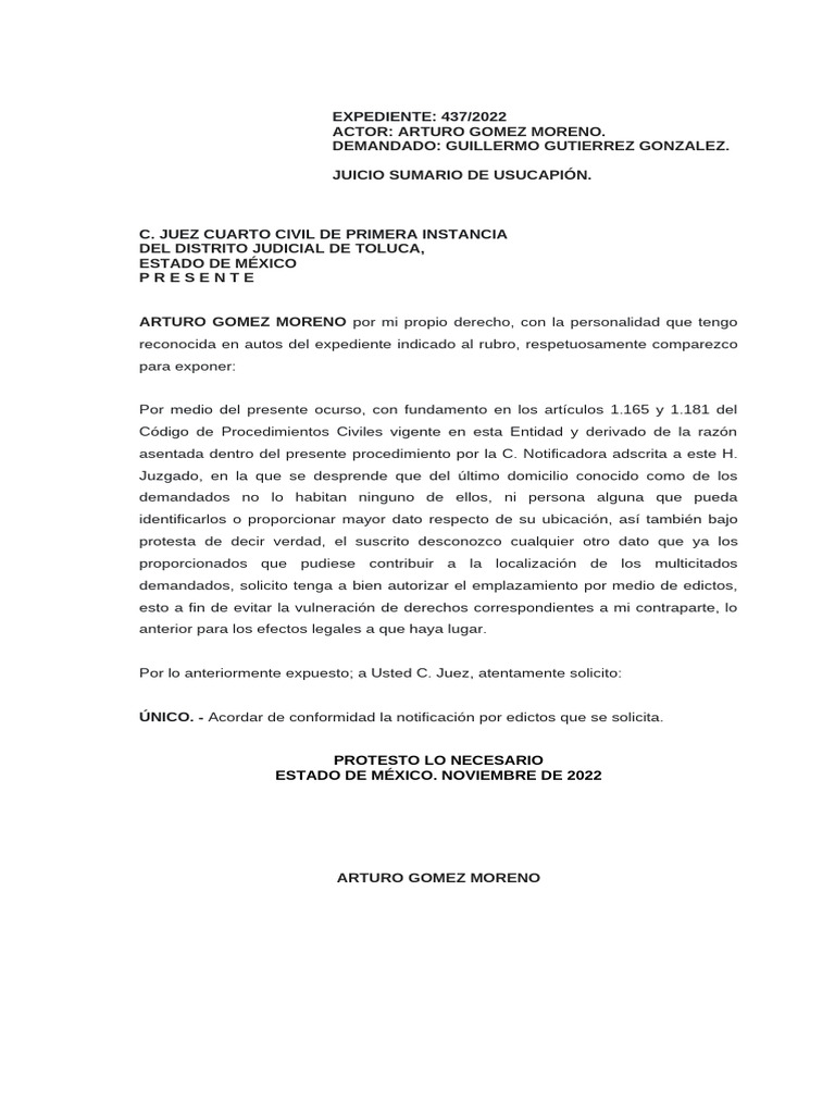 Solicitud de Emplazamiento por Edictos | PDF | Derecho