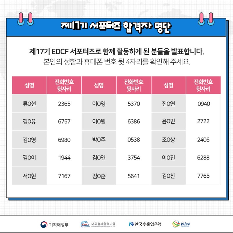 제17기 EDCF 서포터즈 합격자 발표 : 네이버 블로그