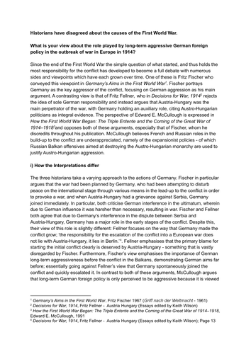 Edexcel A level History Coursework (A grade) 'Is Germany to be blamed ...