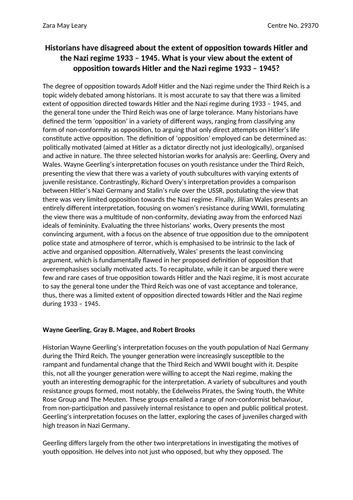 A Level History - Edexcel Coursework A* Exemplar | Teaching Resources