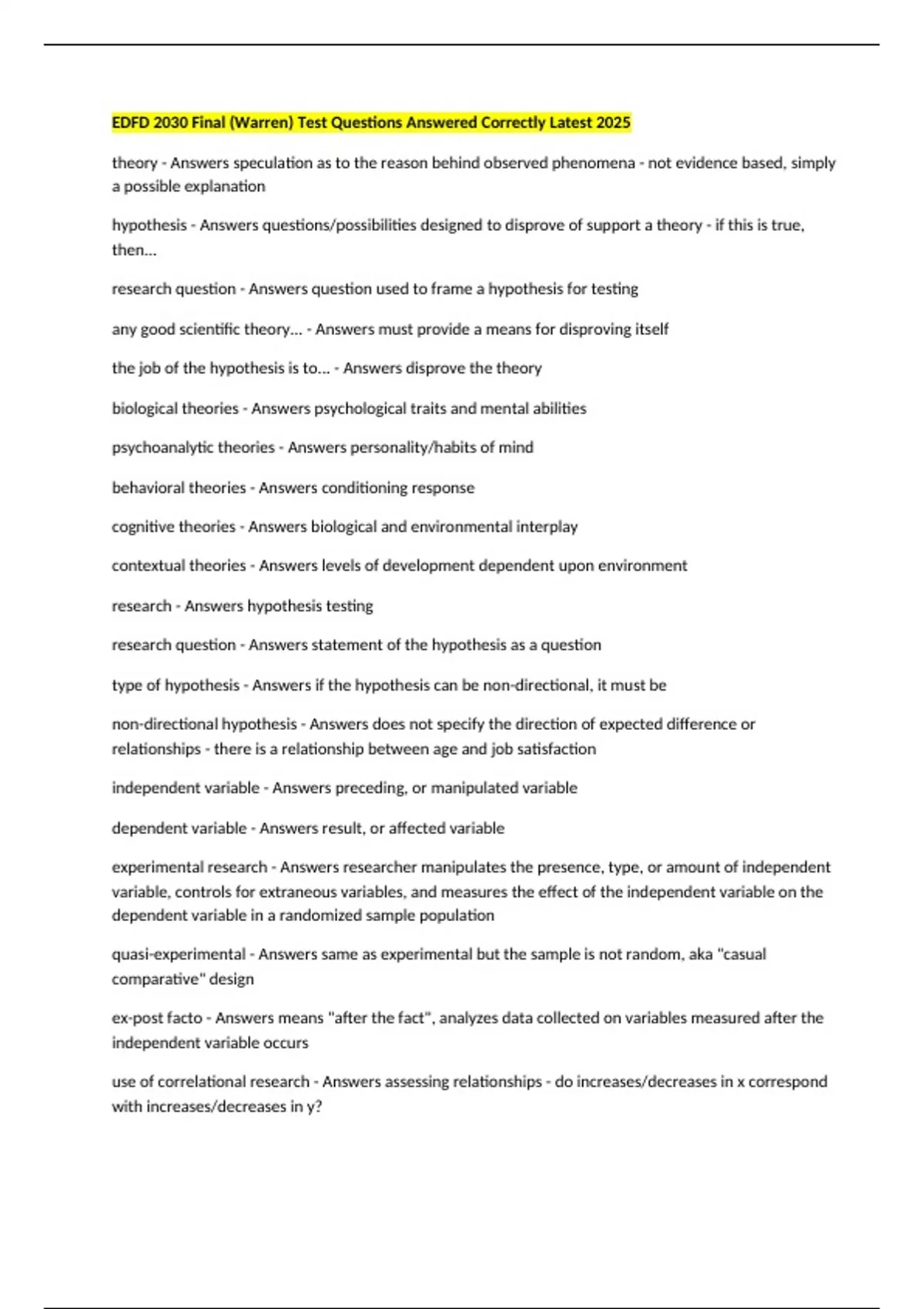EDFD 2030 Final (Warren) Test Questions Answered Correctly Latest 2025 ...