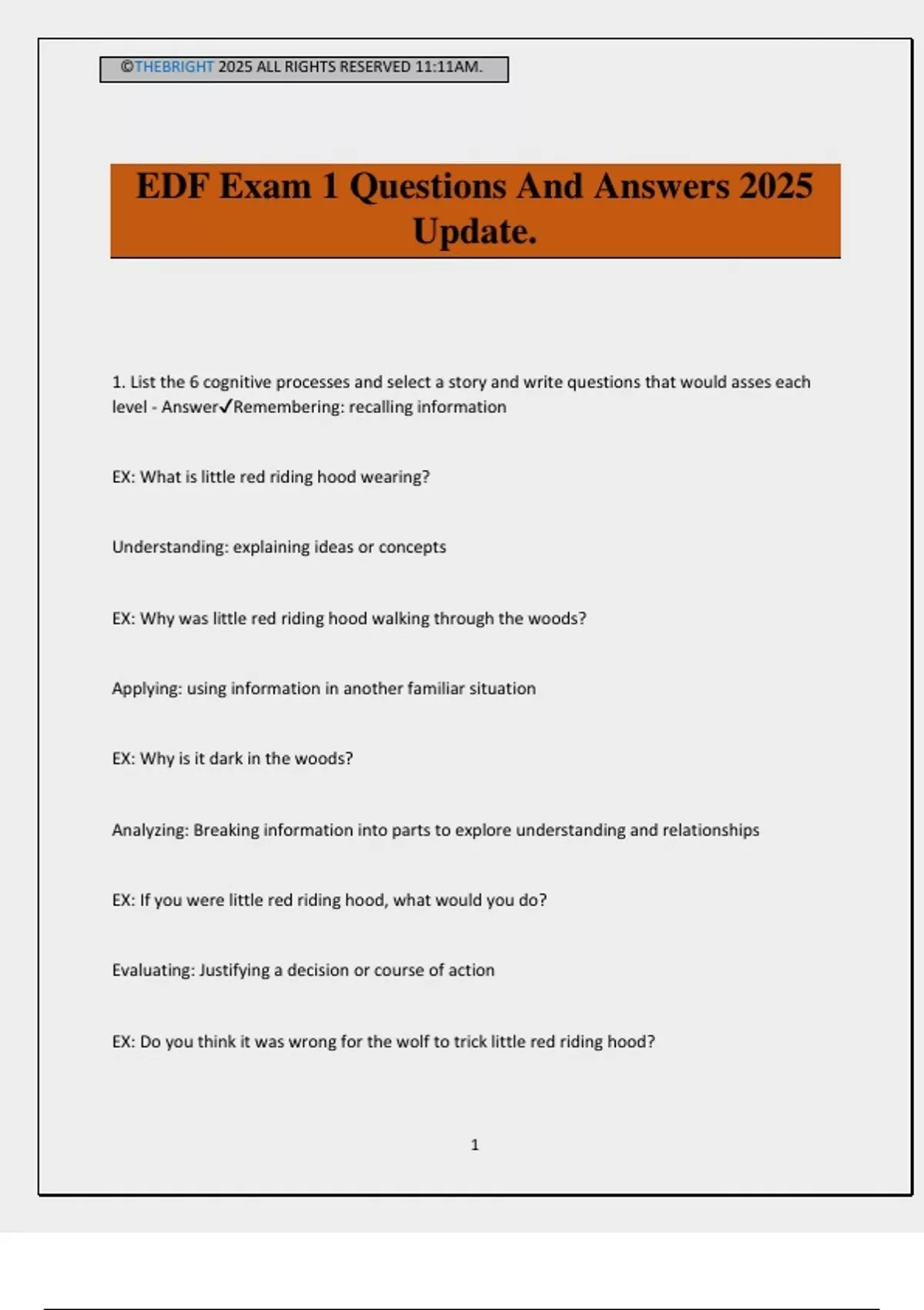 EDF Exam 1 Questions And Answers 2025 Update. - EDF - Stuvia US