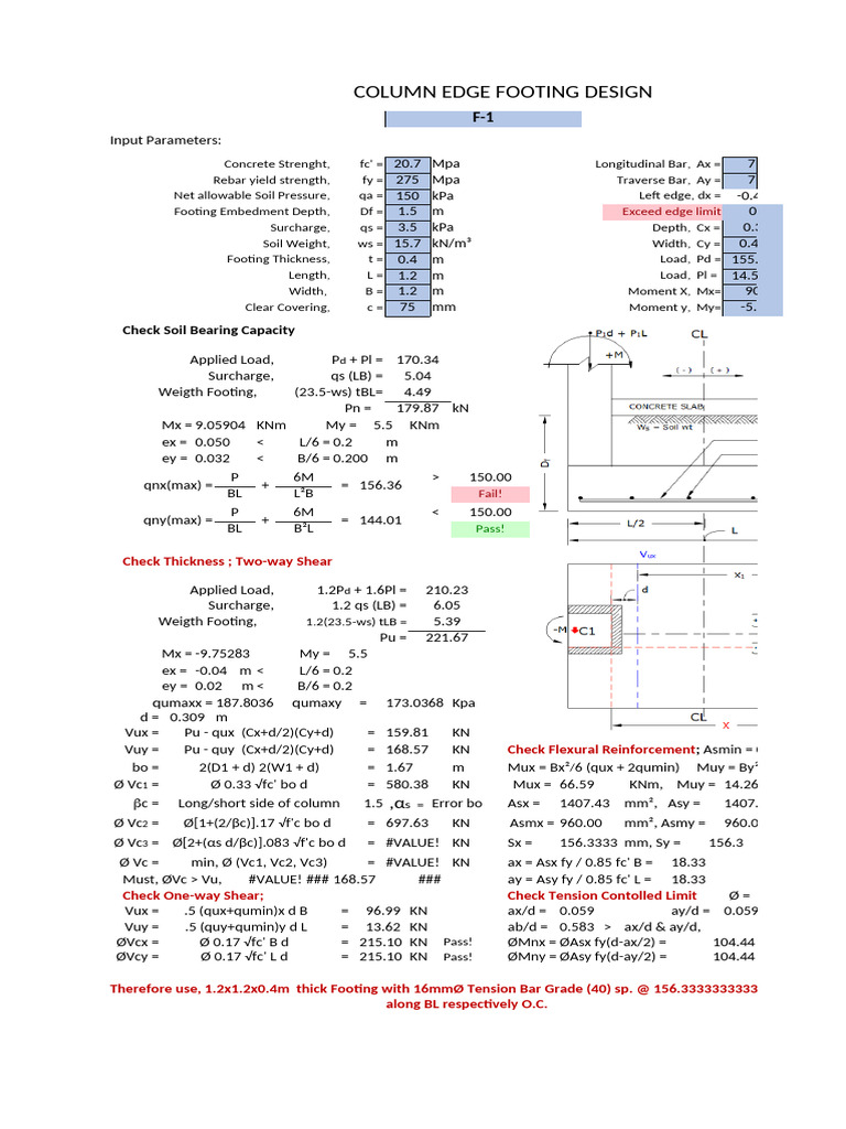 Column Edge Footing Design Analysis | PDF | Building Materials | Soil