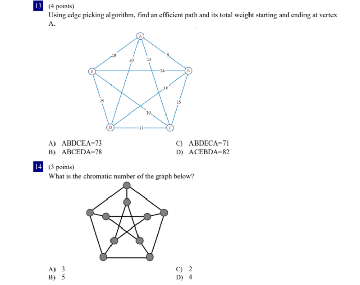 SOLVED: Question 1 (6+14 = 40 Points): Consider the graph below: 90 B E ...