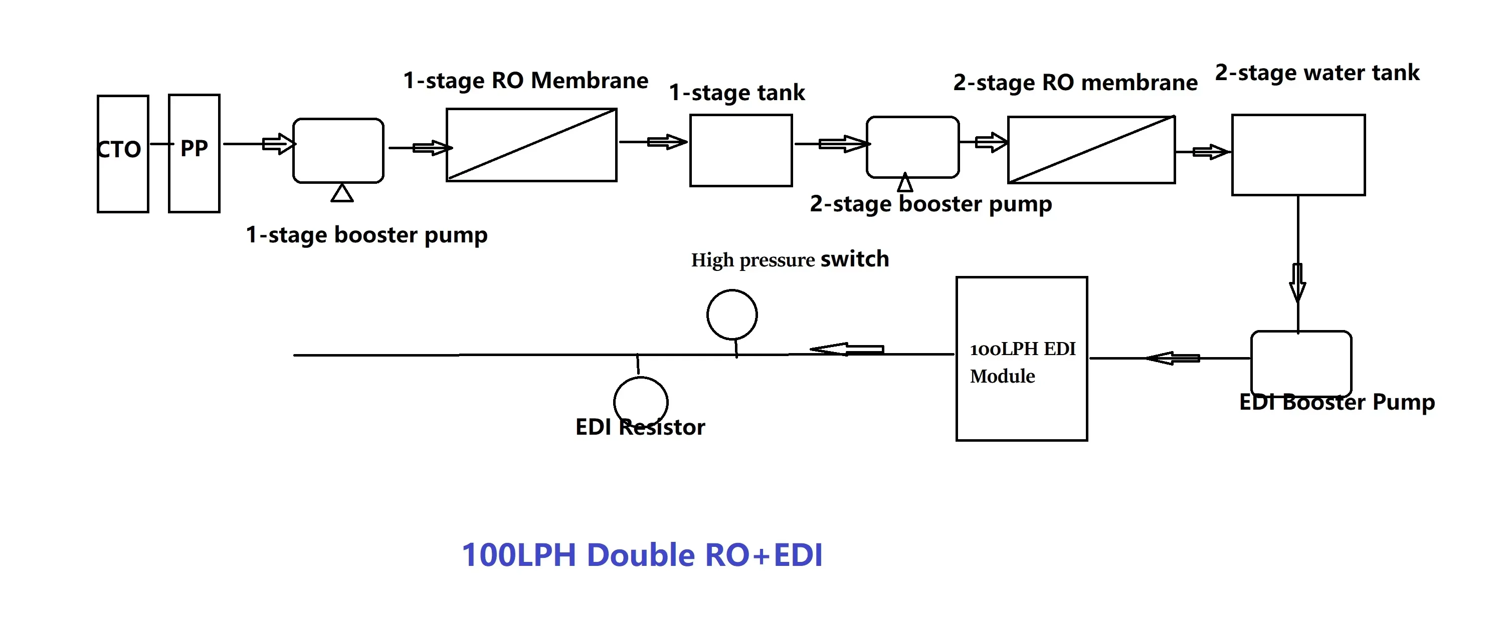 Double Stage RO System with EDI Module for Deionized Water 1000L/H ...
