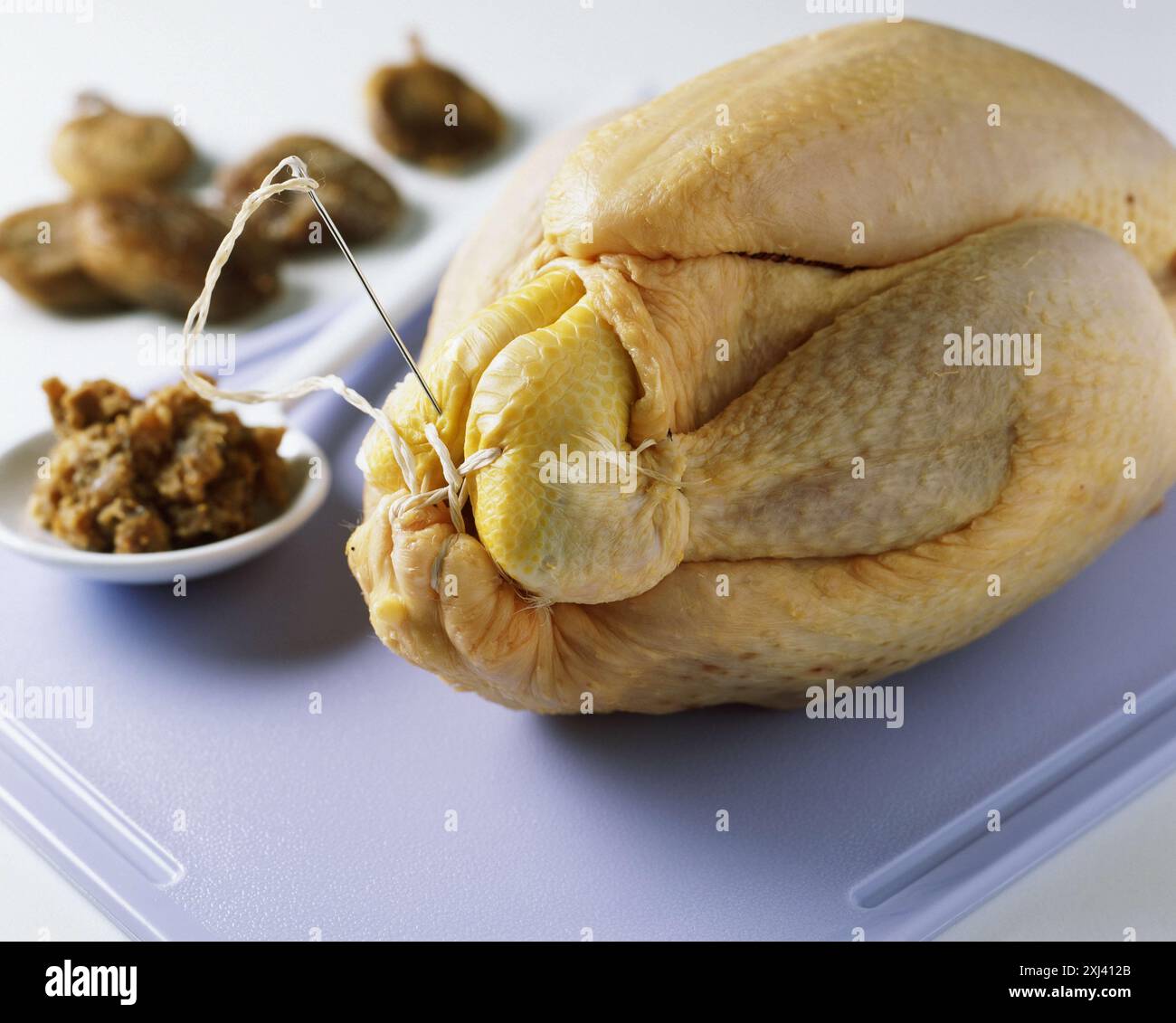 Sewing the chicken with cooking string Stock Photo - Alamy