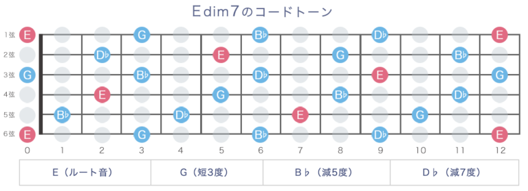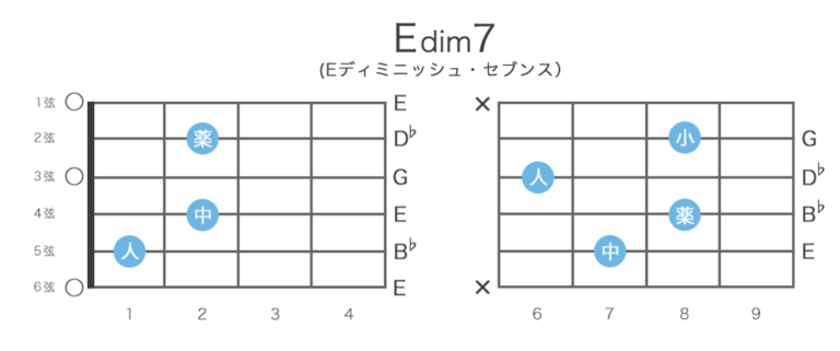 Edim7(Eディミニッシュセブンス)コードの押さえ方 15通り / 指板図・構成音 | ギターコード辞典 − ギタコン
