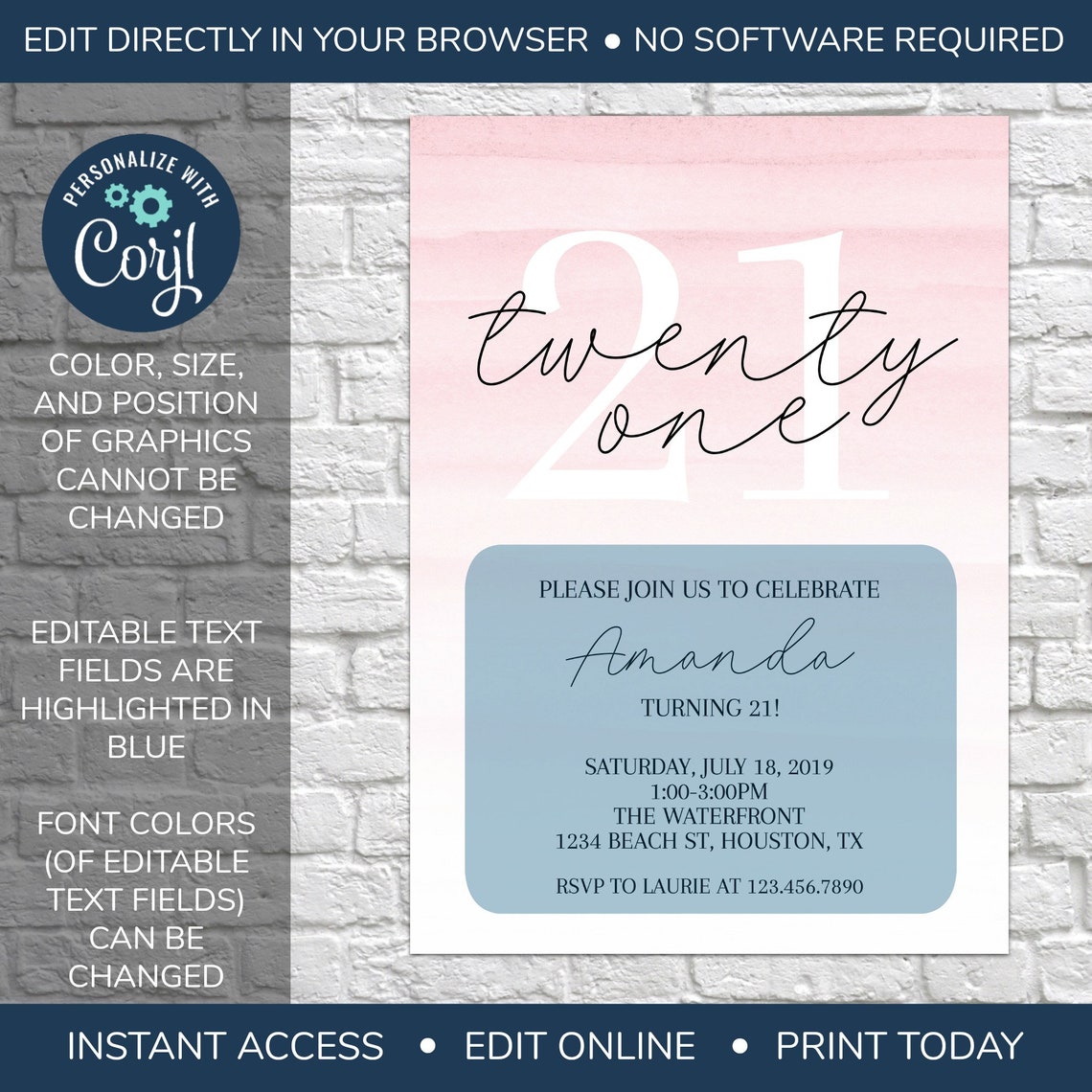 Editable 21st Birthday Invite Template INSTANT DOWNLOAD | Etsy