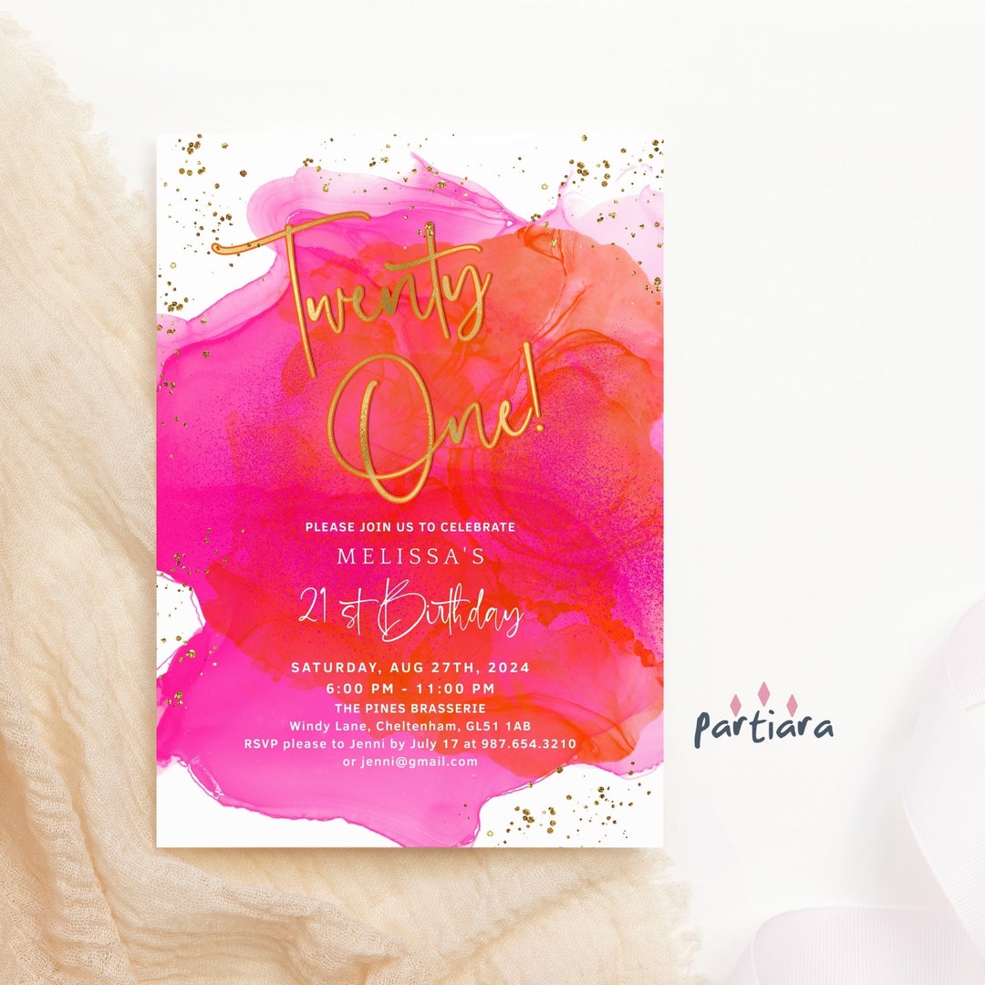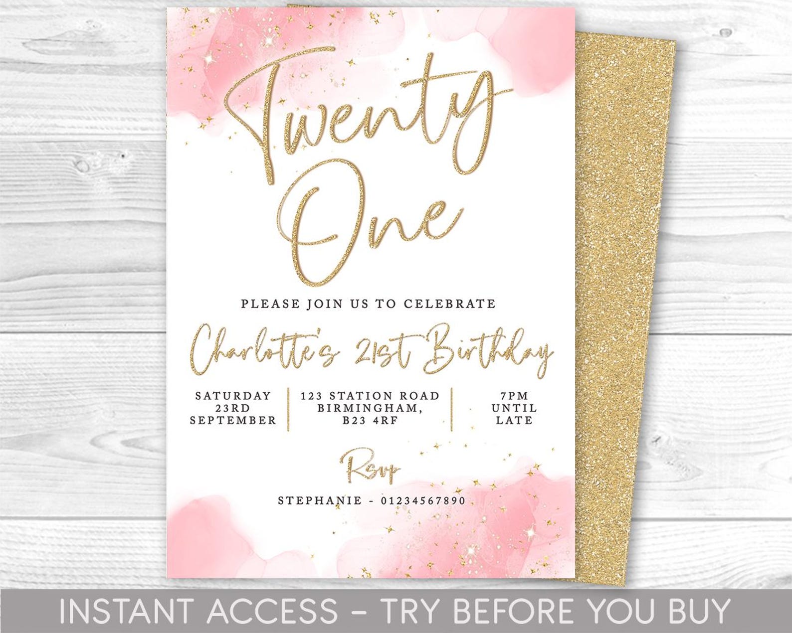 21st Birthday Invitation Editable 21st Invite, Pink and Gold Invitation ...