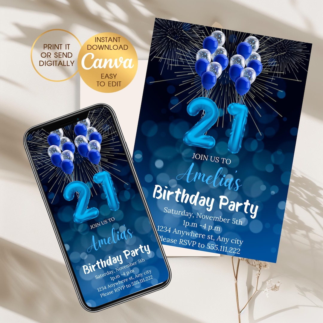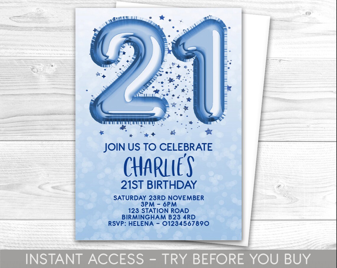 21st Birthday Invitation Editable 21st Invite Blue Mens - Etsy