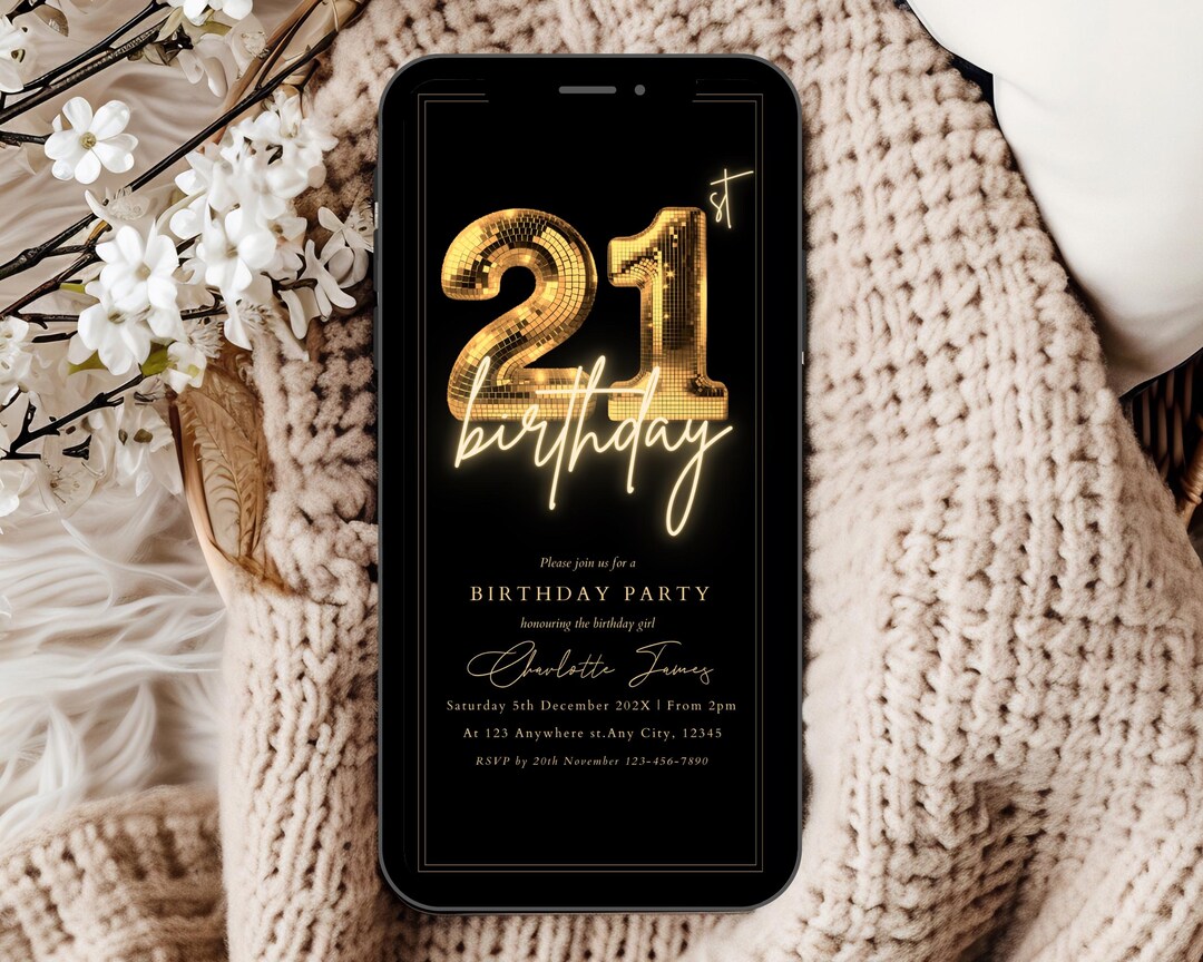 EDITABLE 21th Birthday Invitation Template, Electronic Party Invite ...