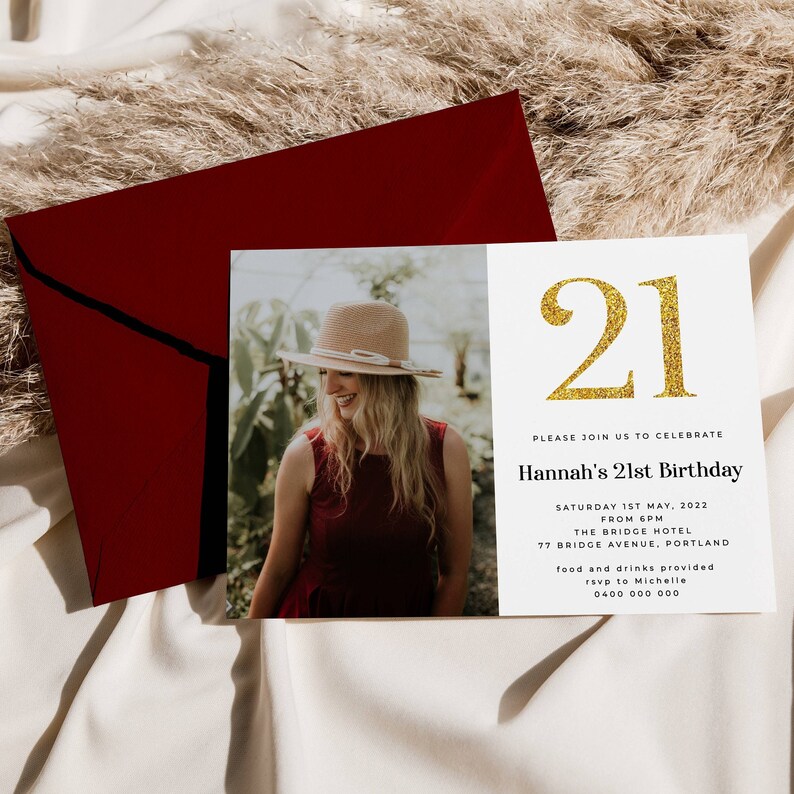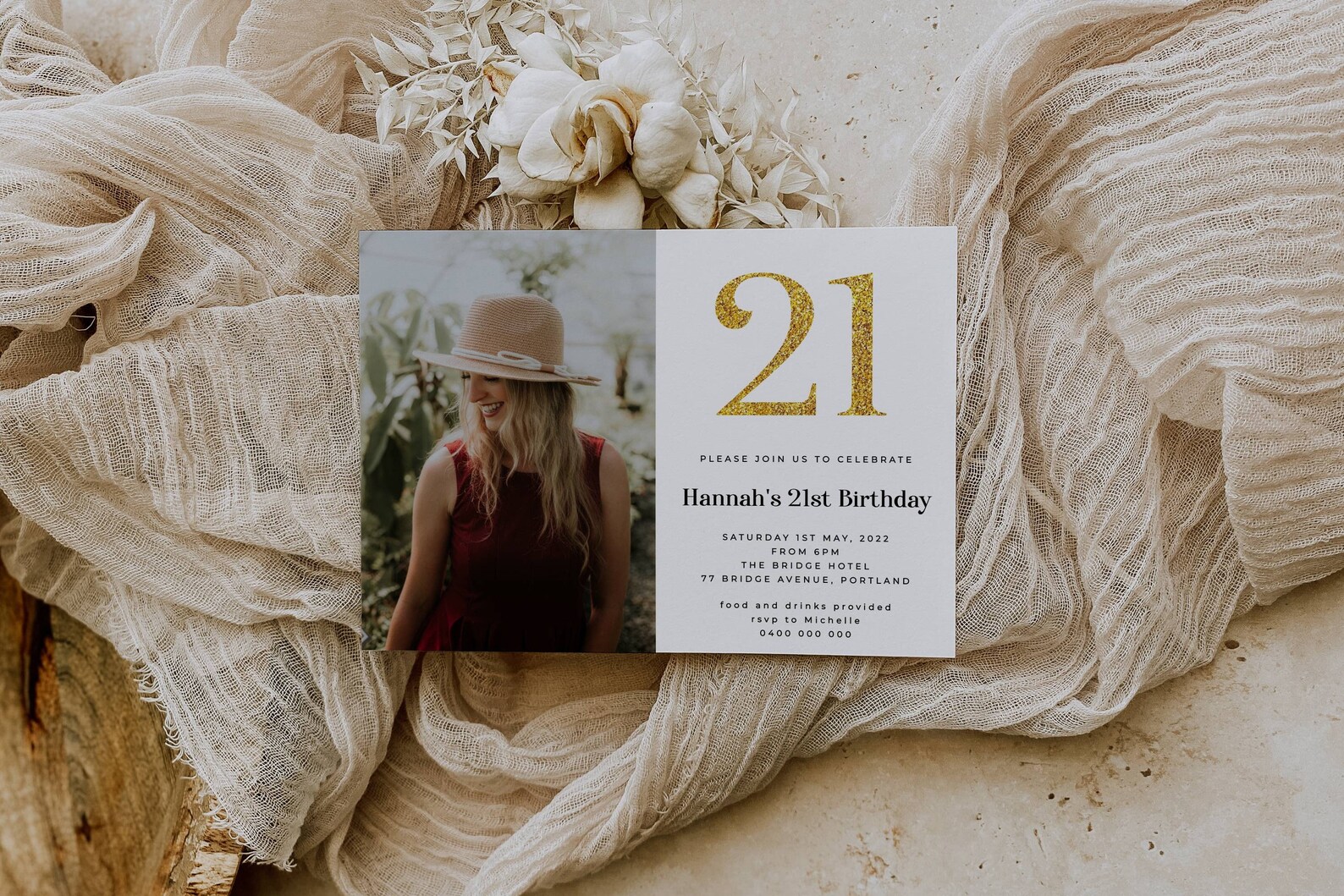 Editable 21st Birthday Photo Invitation Template, Printable Gold ...