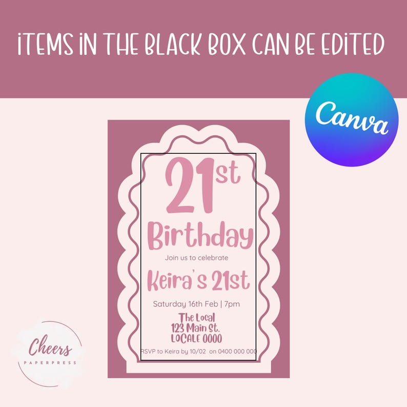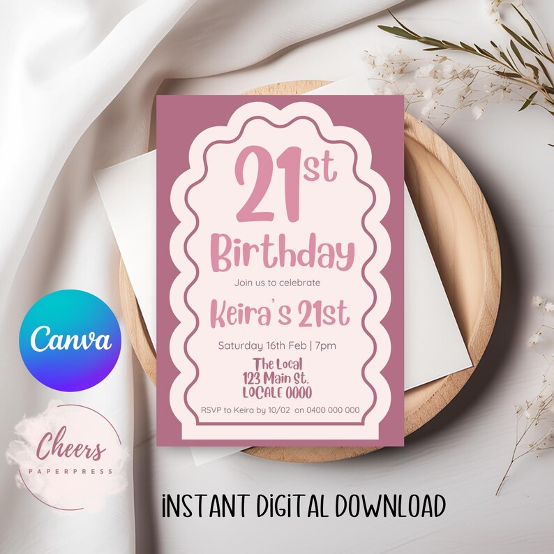 21st Birthday Invitation | Editable Template | Personalised | Birthday ...