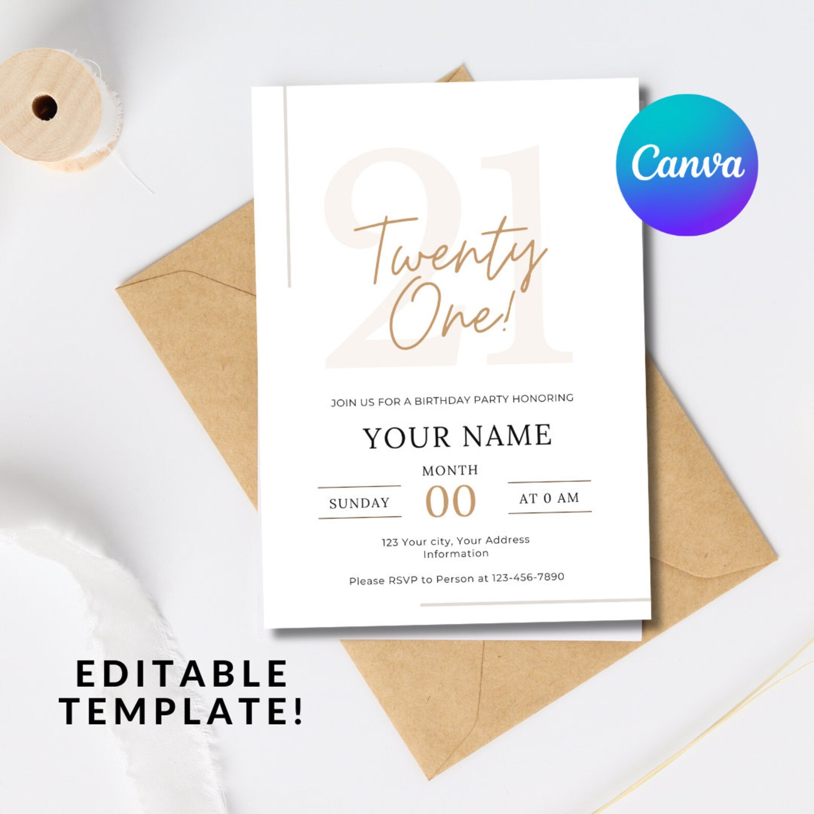 Editable Minimalist 21birthday Invitation|editable Template|instant ...