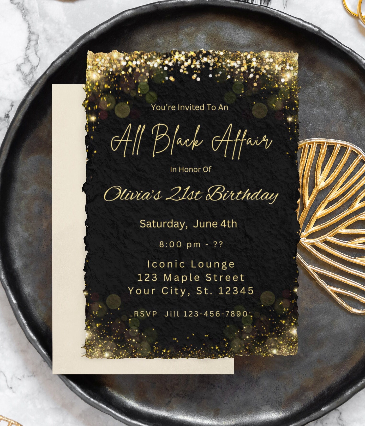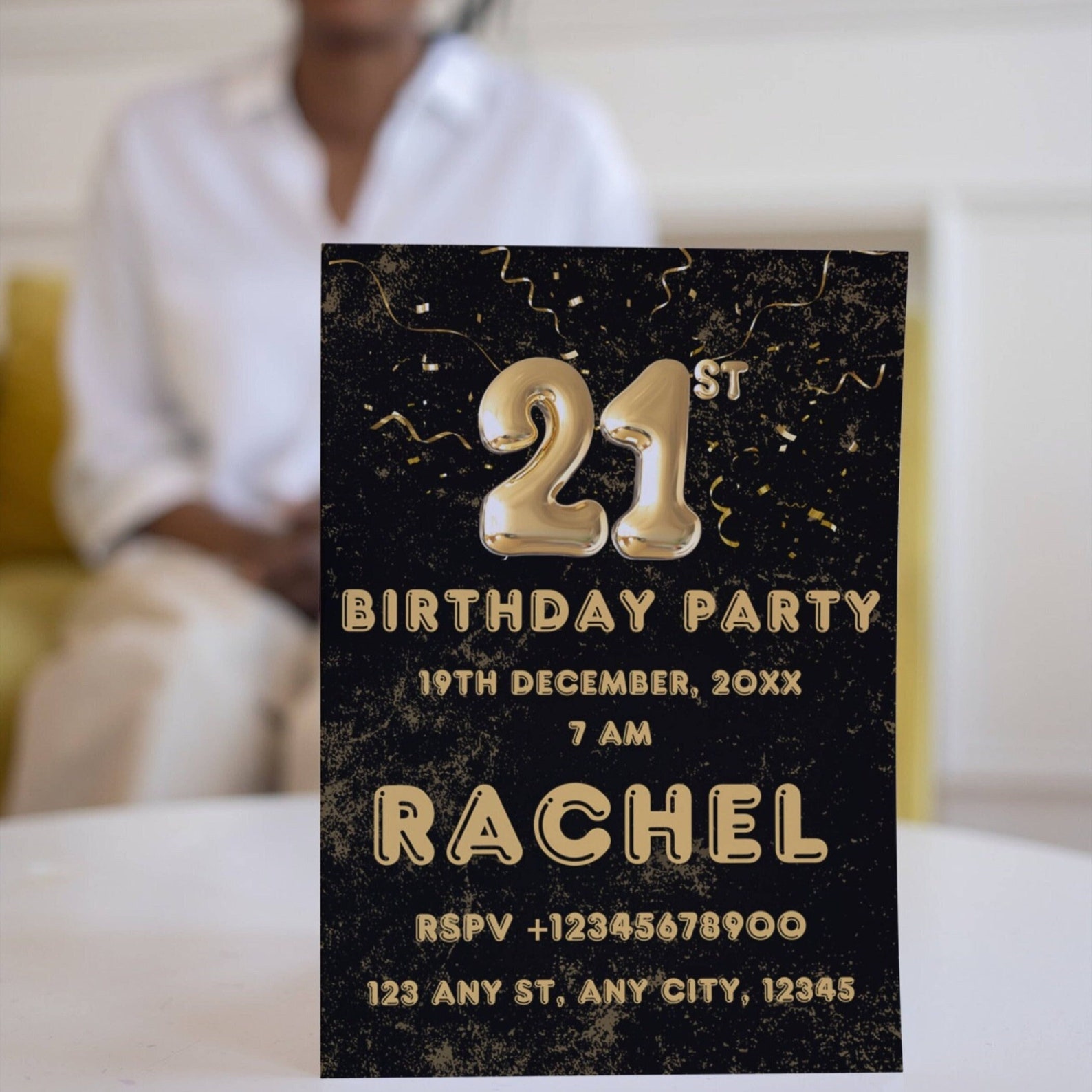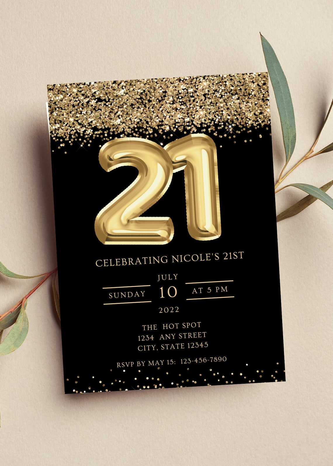 Editable 21st Birthday Invitation Black and Gold Invitation - Etsy