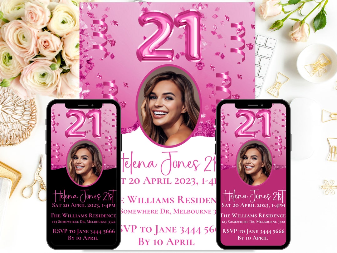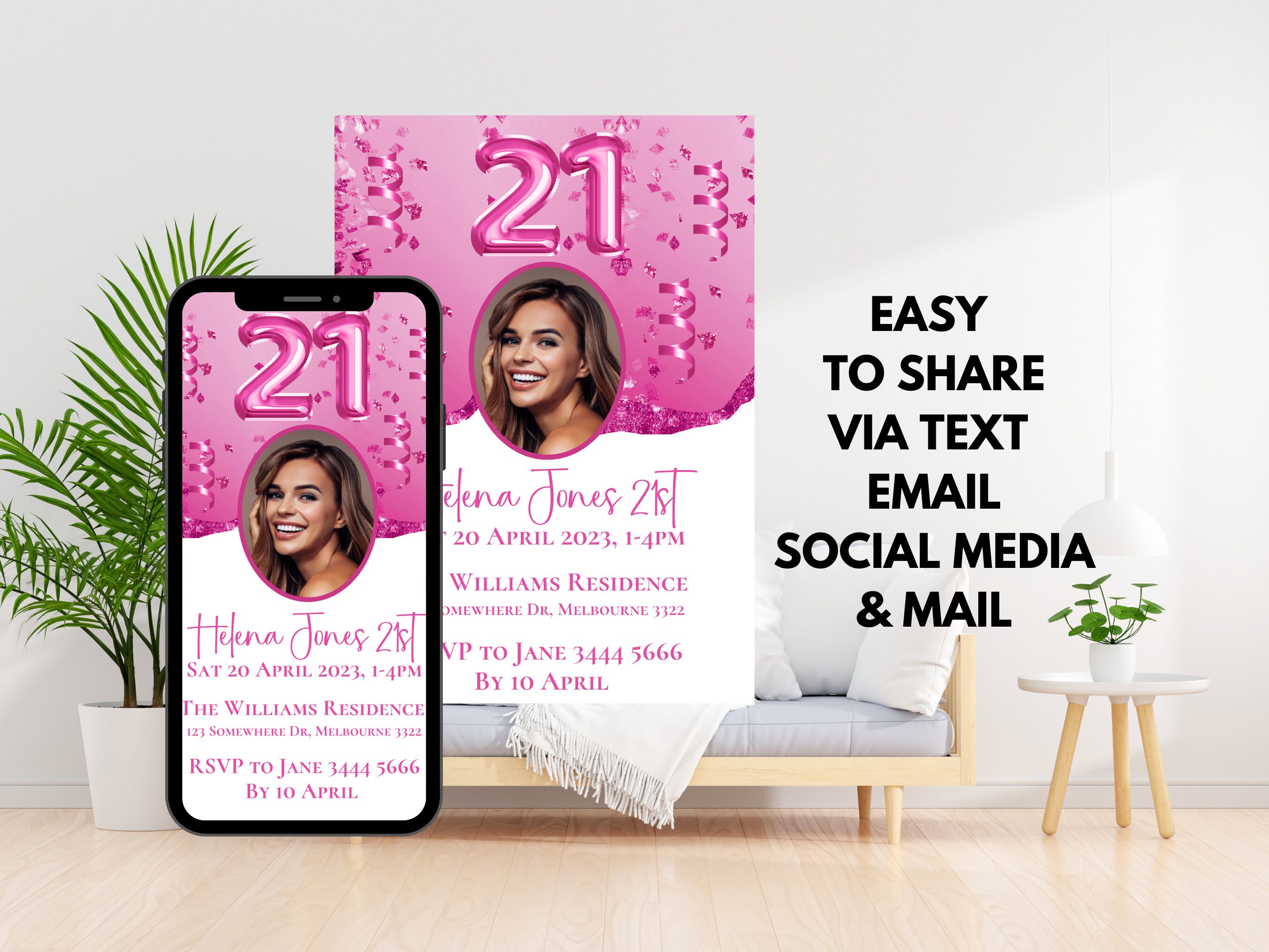 Editable 21st Birthday Invitation With Photo Digital Evite and ...