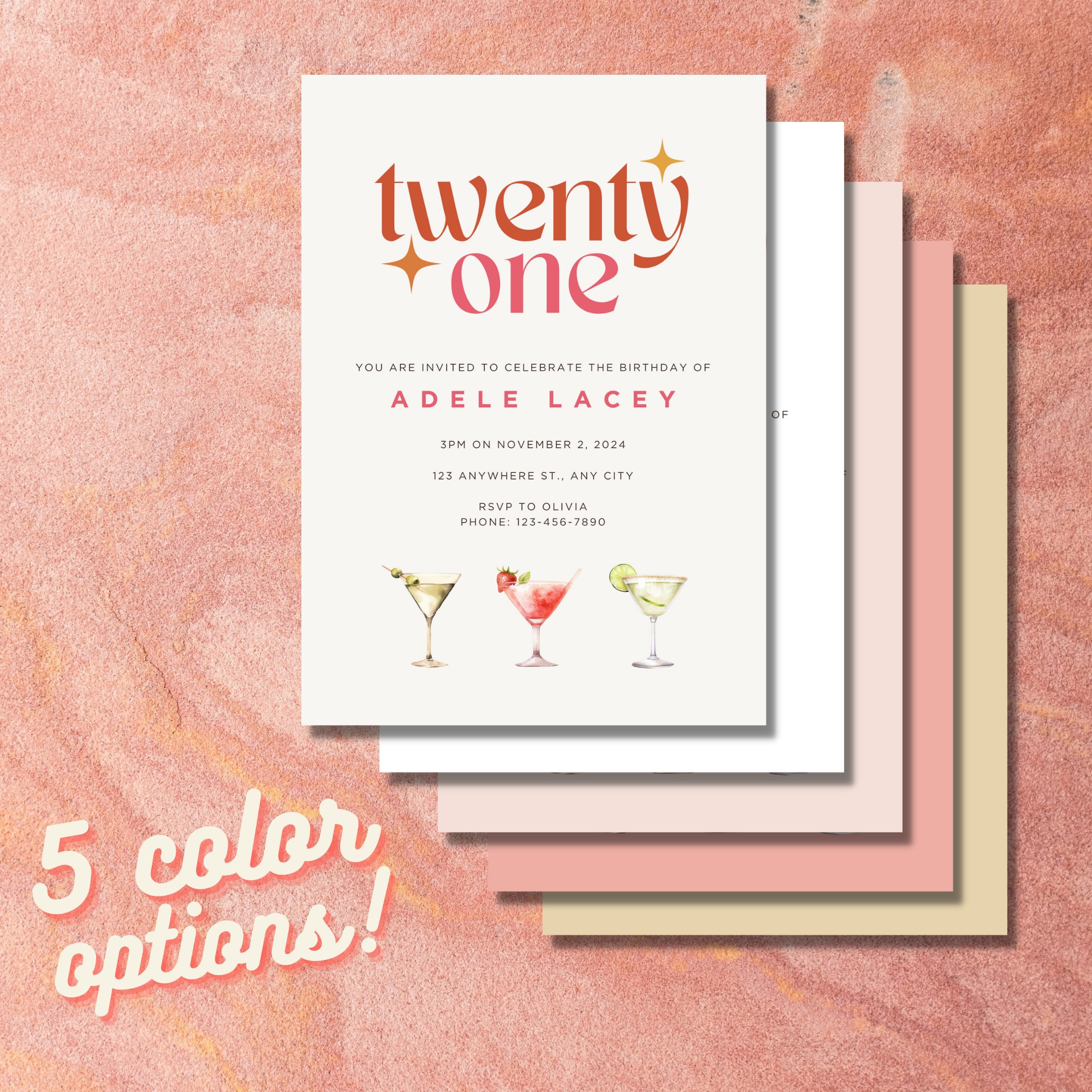 21st Birthday Invitation Electronic, Editable Template, for Girl, 21 ...