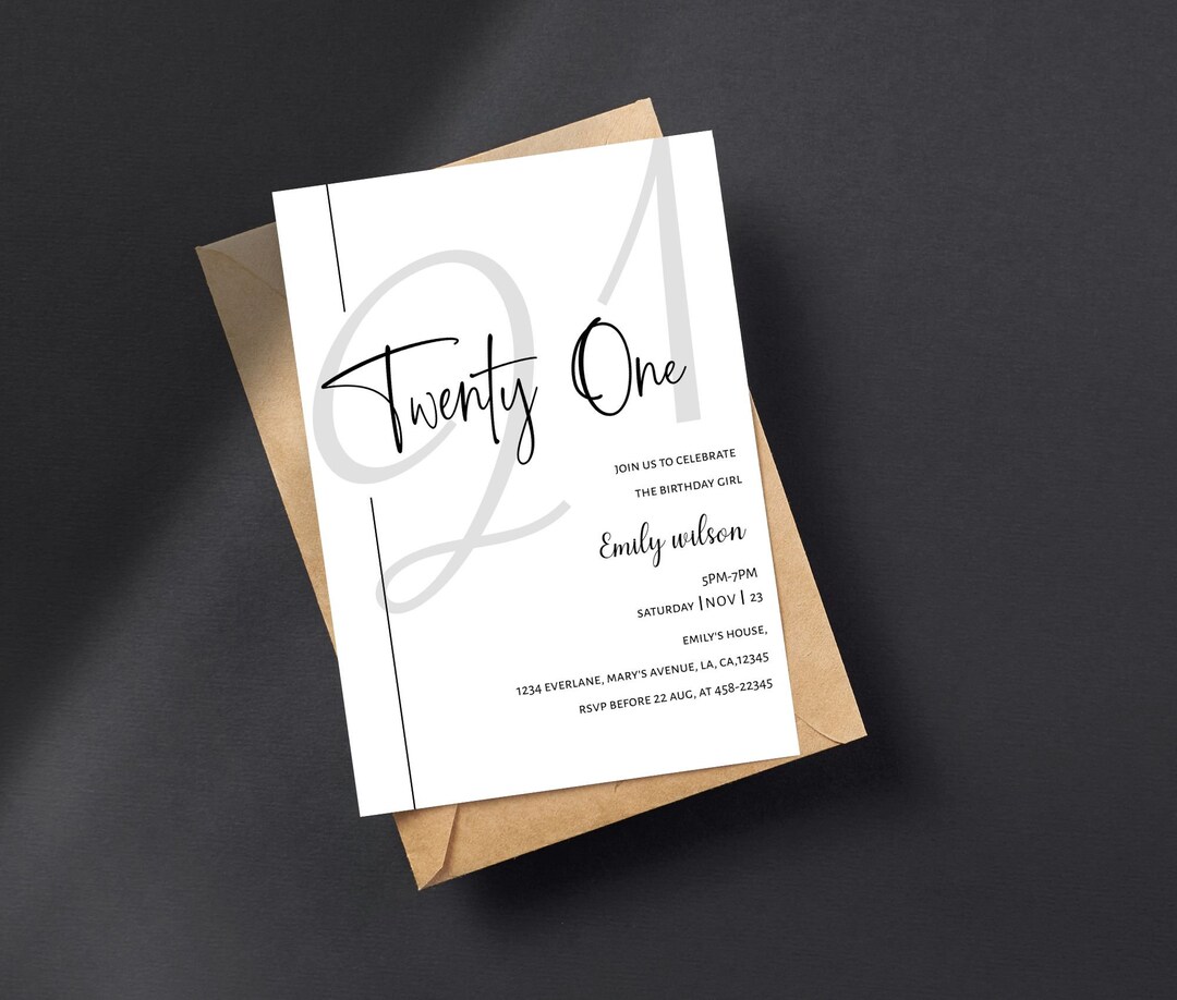 21st Birthday Invitation Template | 21 Birthday Celebration | Simple ...