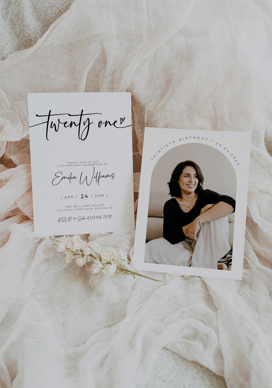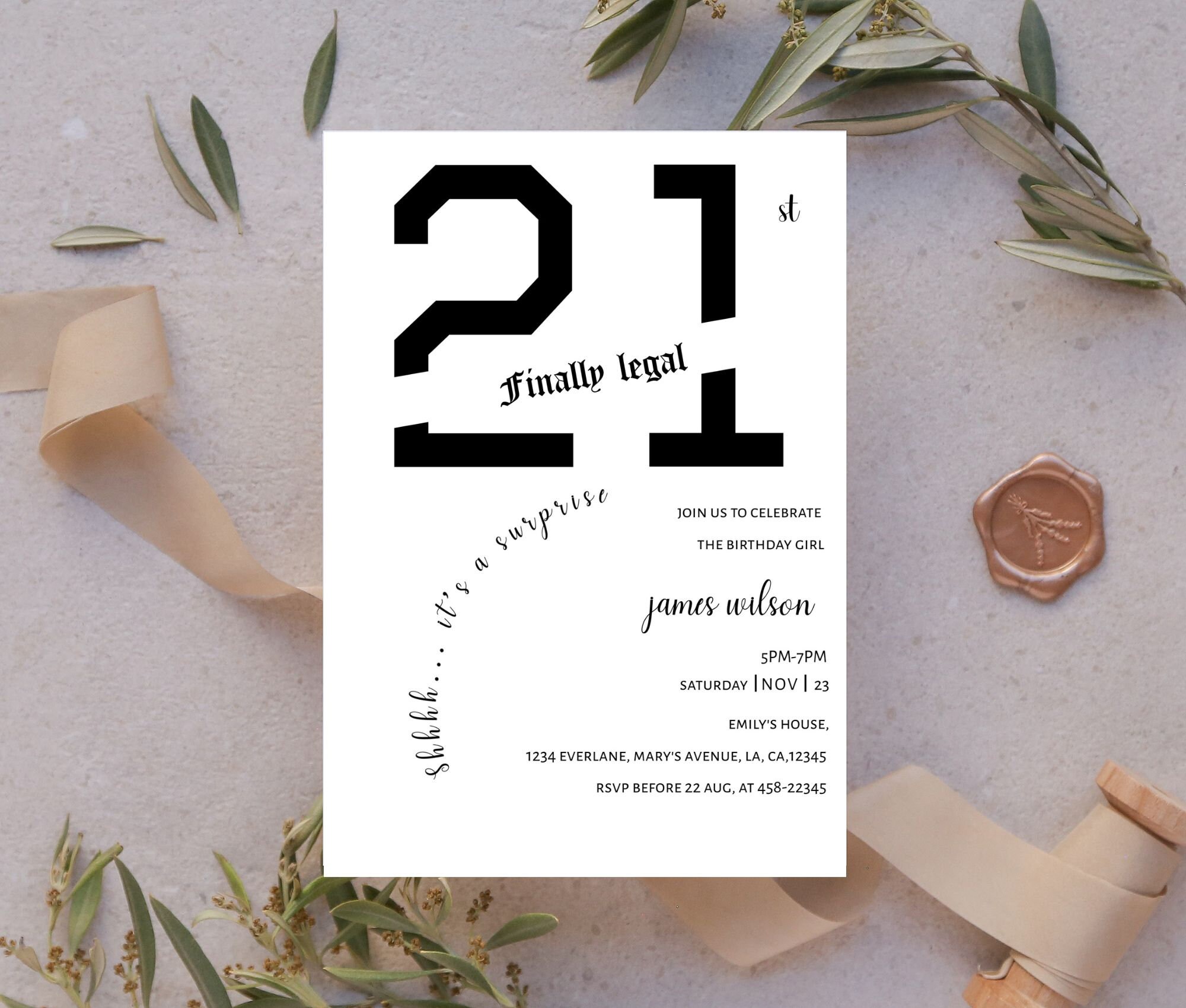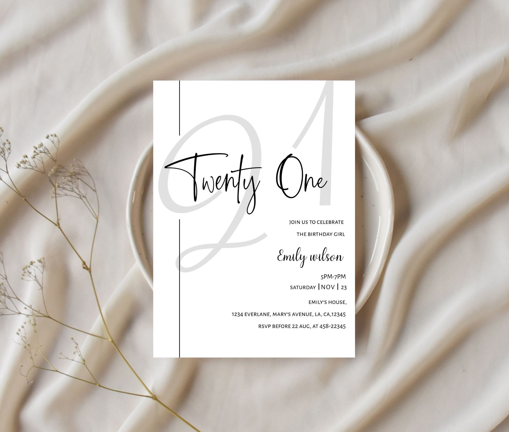 Simple 21st Birthday Party Invitation, Minimalist Invite, Adult ...