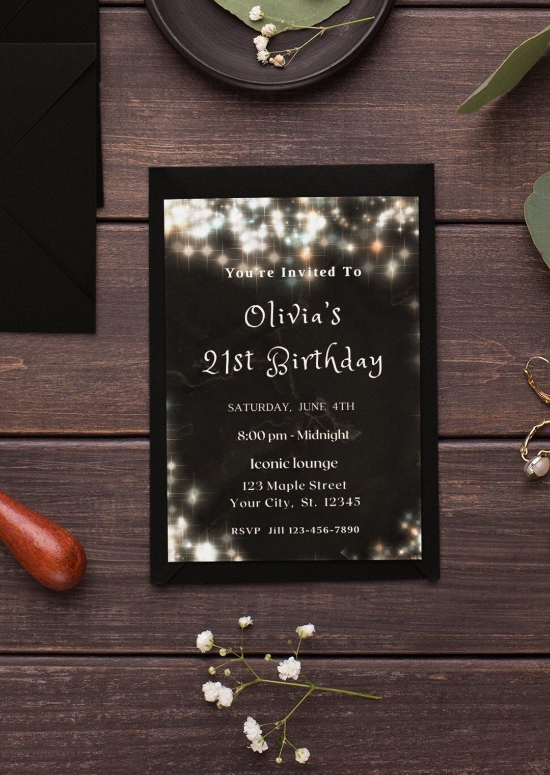 EDITABLE - 21st Birthday Invitation - 21st Birthday Invite, Black and ...