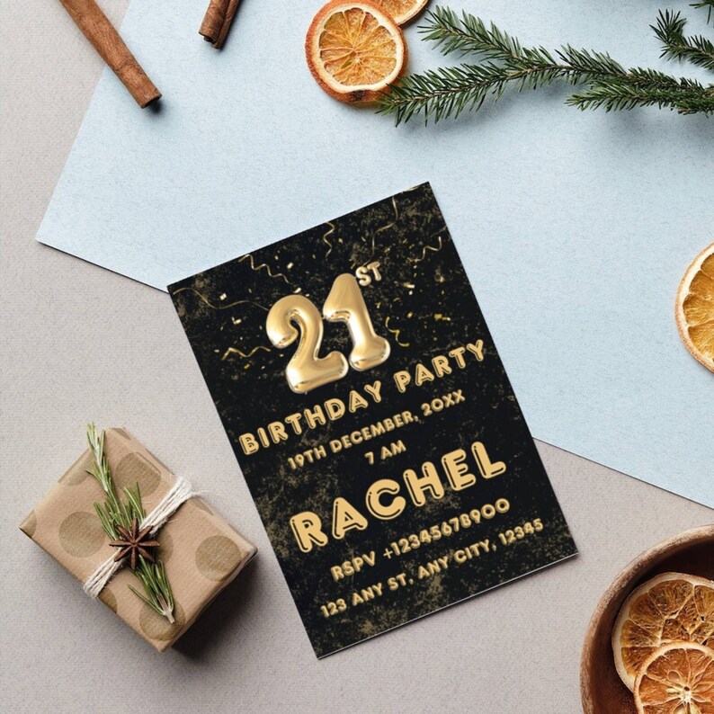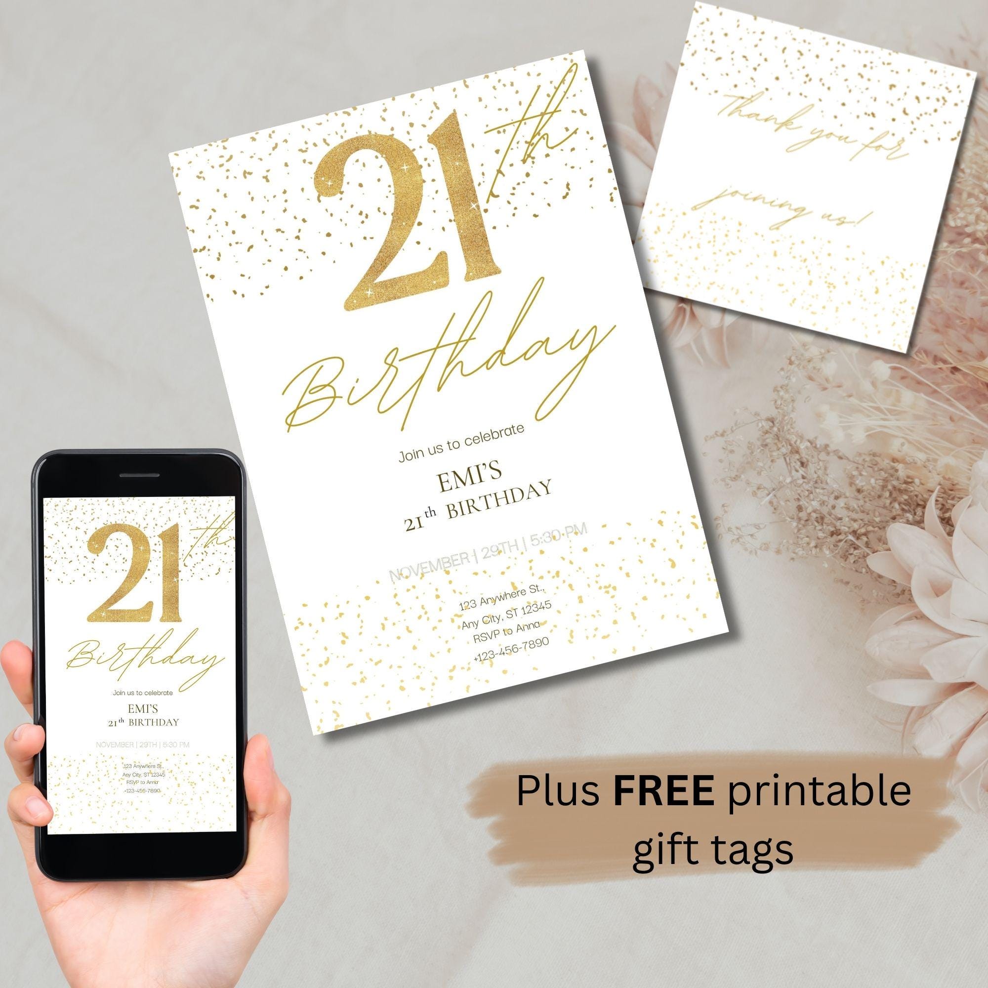 Editable 21st Birthday Invitation Template | Elegant Gold 21st Birthday ...