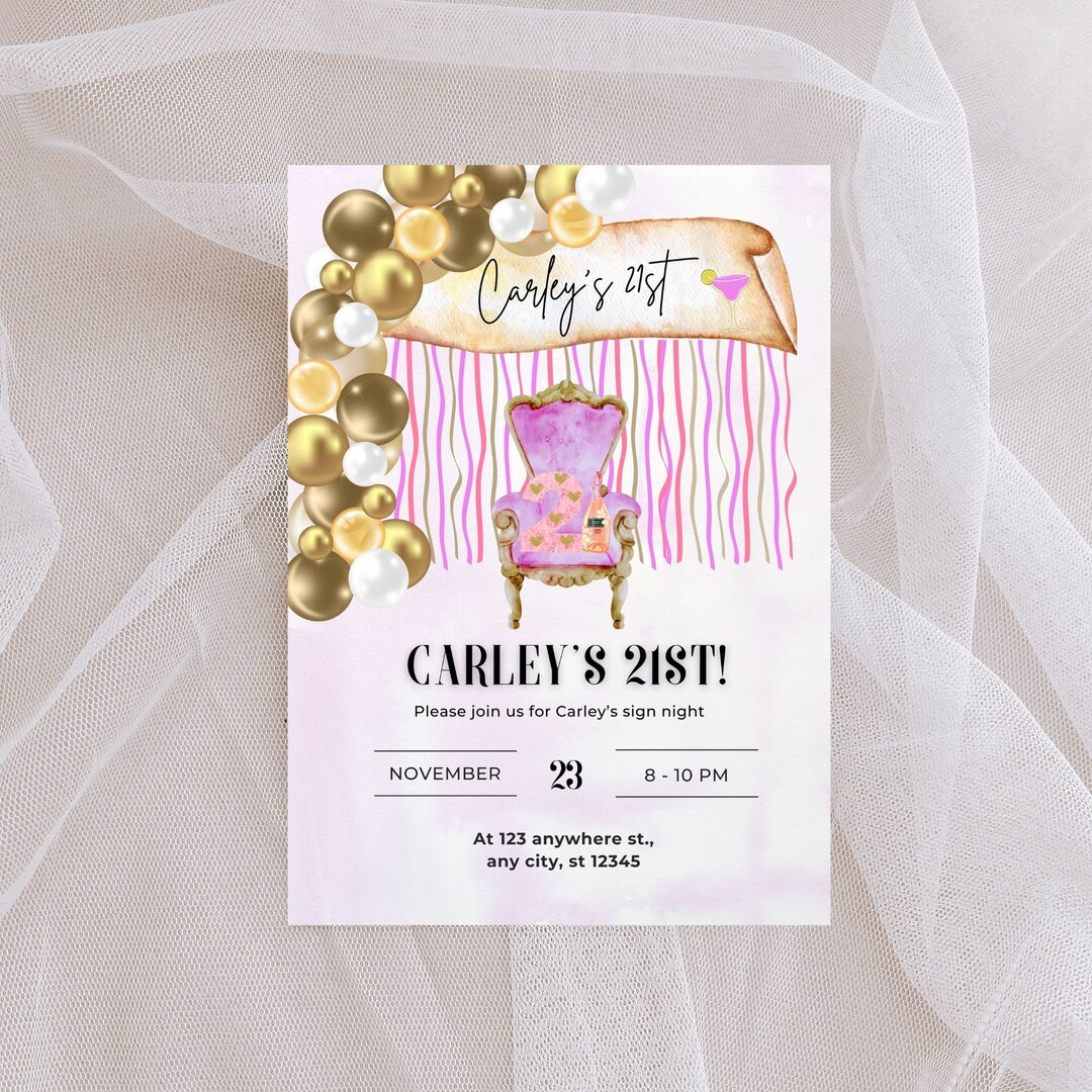 Editable Invitation, Digital Invitation, 21st Birthday, Invitation ...