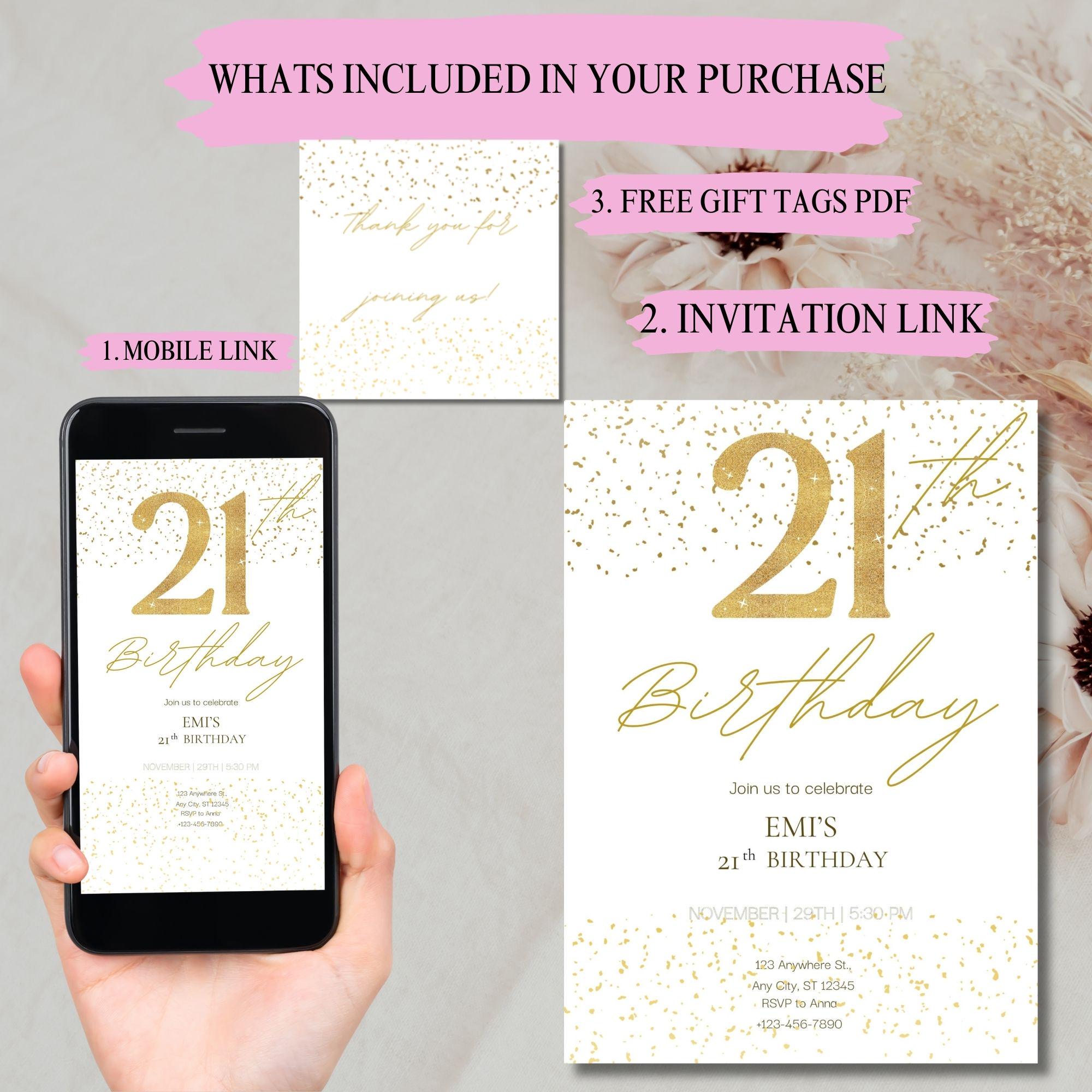 Digital 21st Birthday Invitation, Editable Twenty First Electronic ...