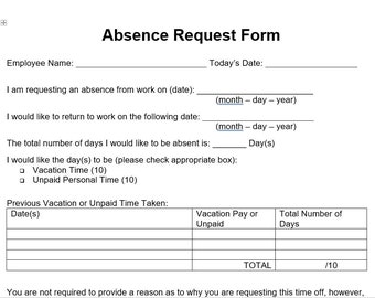Absence Request Form - Etsy