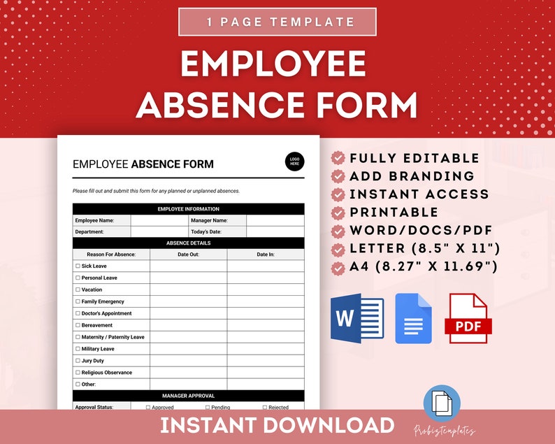 Employee Absence Form Template | ProBizTemplates