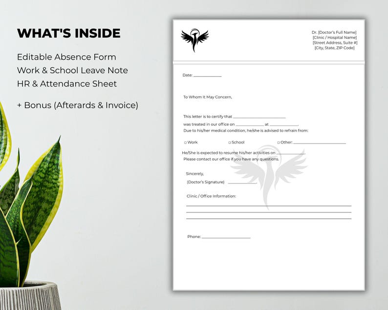 Editable Doctor Excuse Note Template for Work | Customizable Printable ...