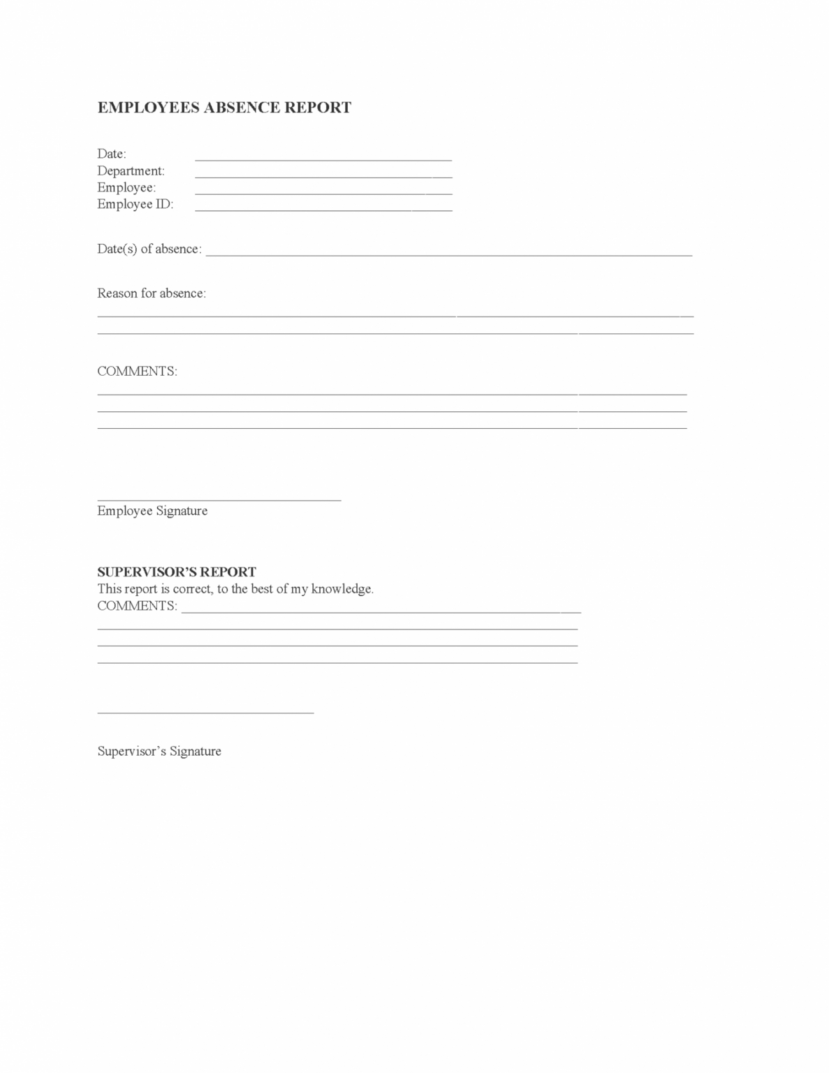 Employee Absence Form Templates PDF. download Fill and print for free ...
