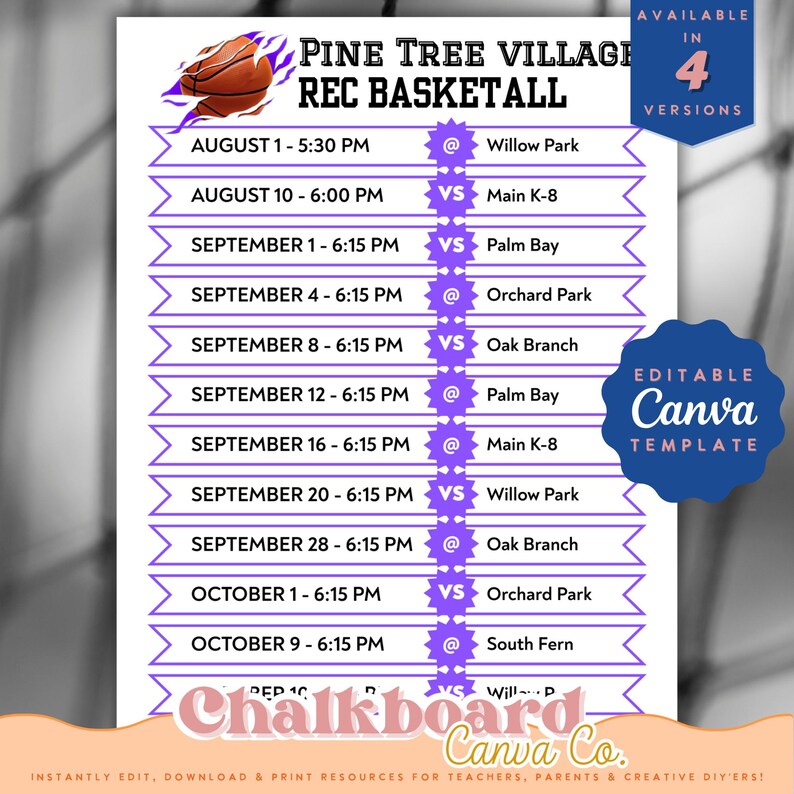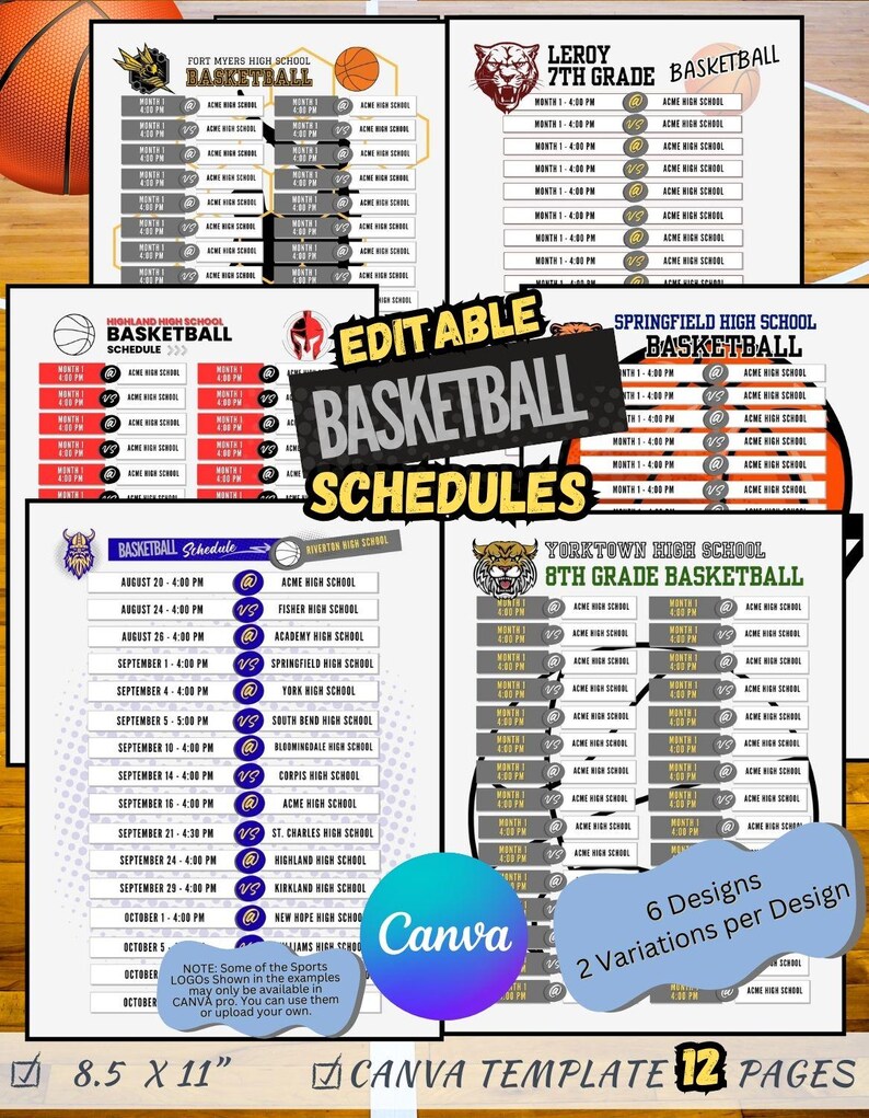 Editable Basketball Schedule CANVA Template | 6 Designs, 2 Variations ...