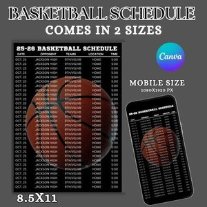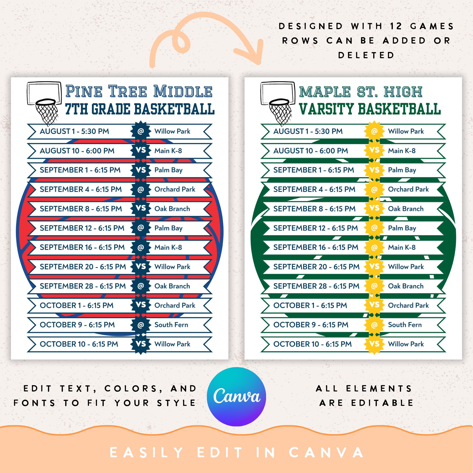 Editable Basketball Schedule Template Canva Basketball - Etsy