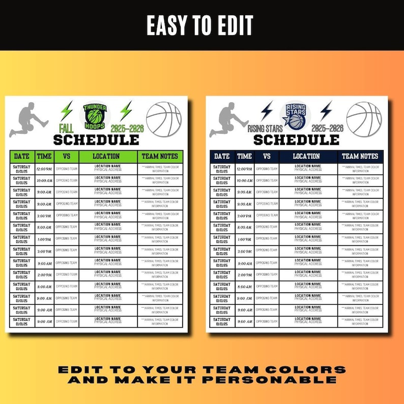 Editable Basketball Schedule Template: Canva DIY Printable (digital ...