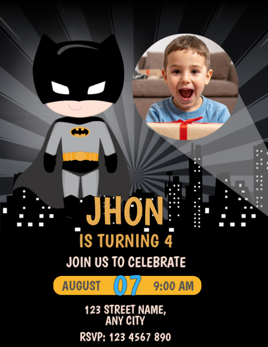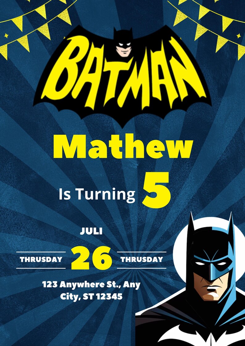 Modèle Editable Batman Birthday Invitation | PosterMyWall
