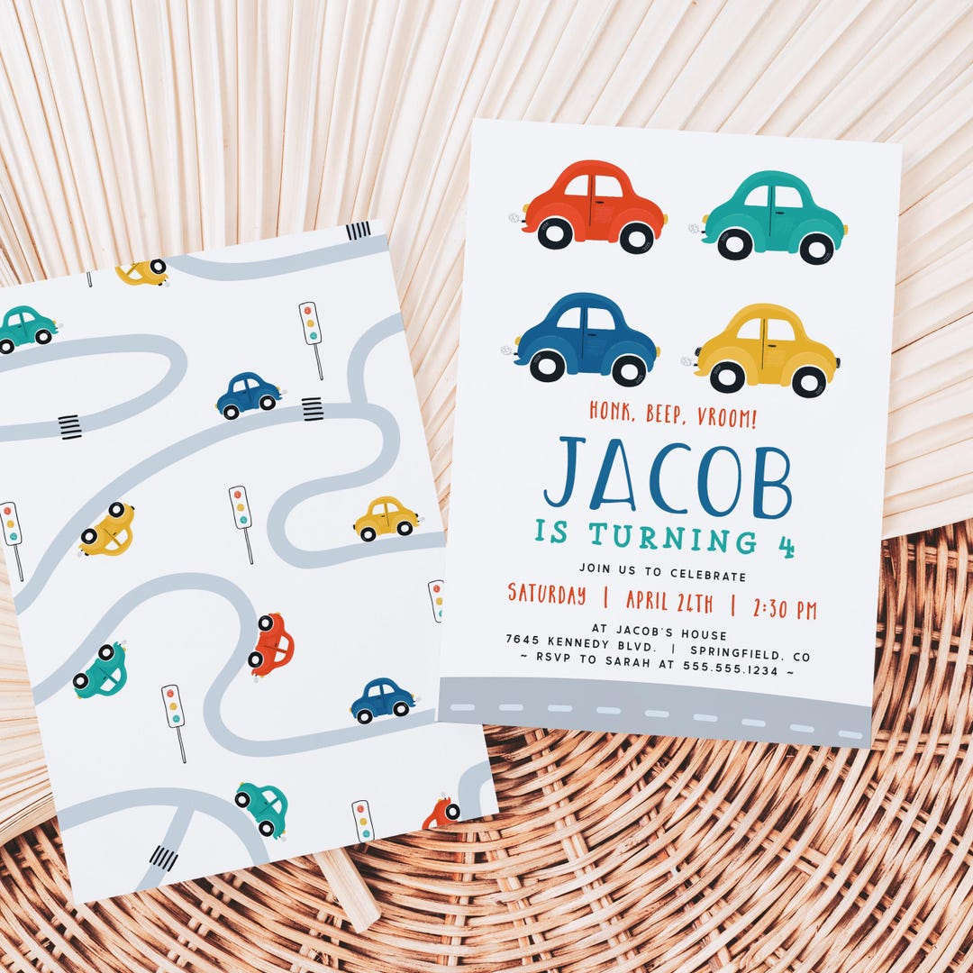 Editable Cars Birthday Invitations - Etsy