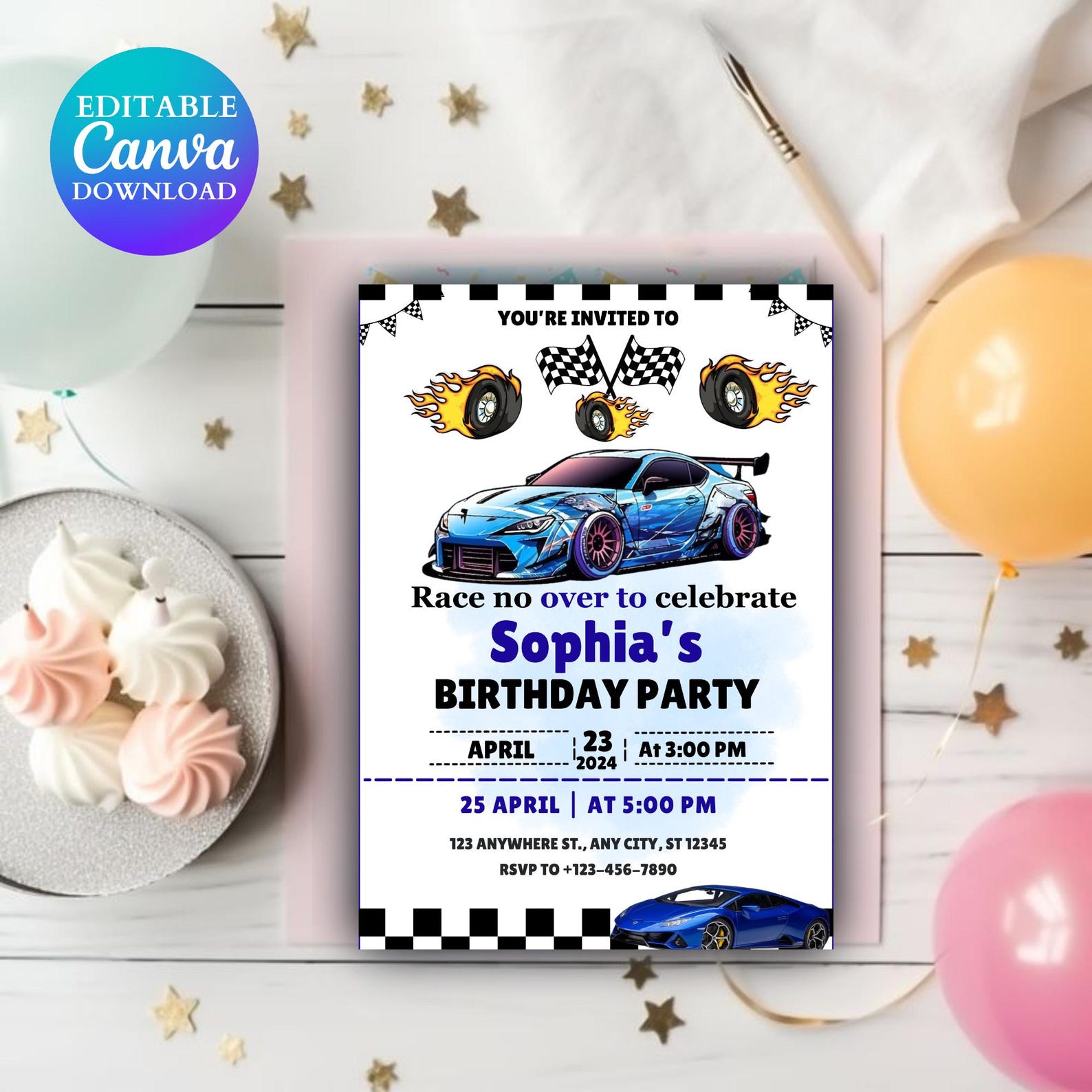 Race Car Birthday Invitation | Gender Neutral | Canva Template ...