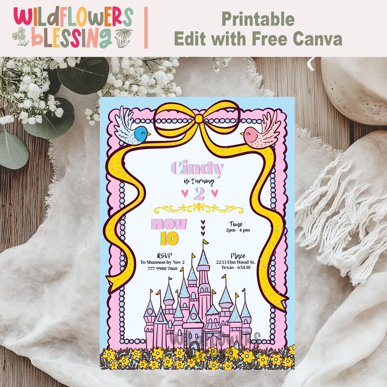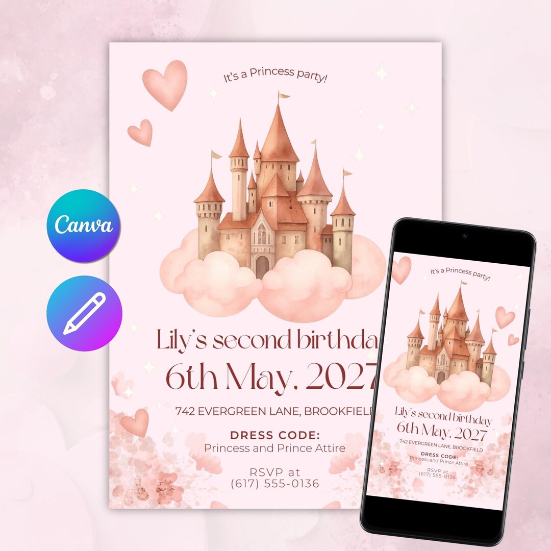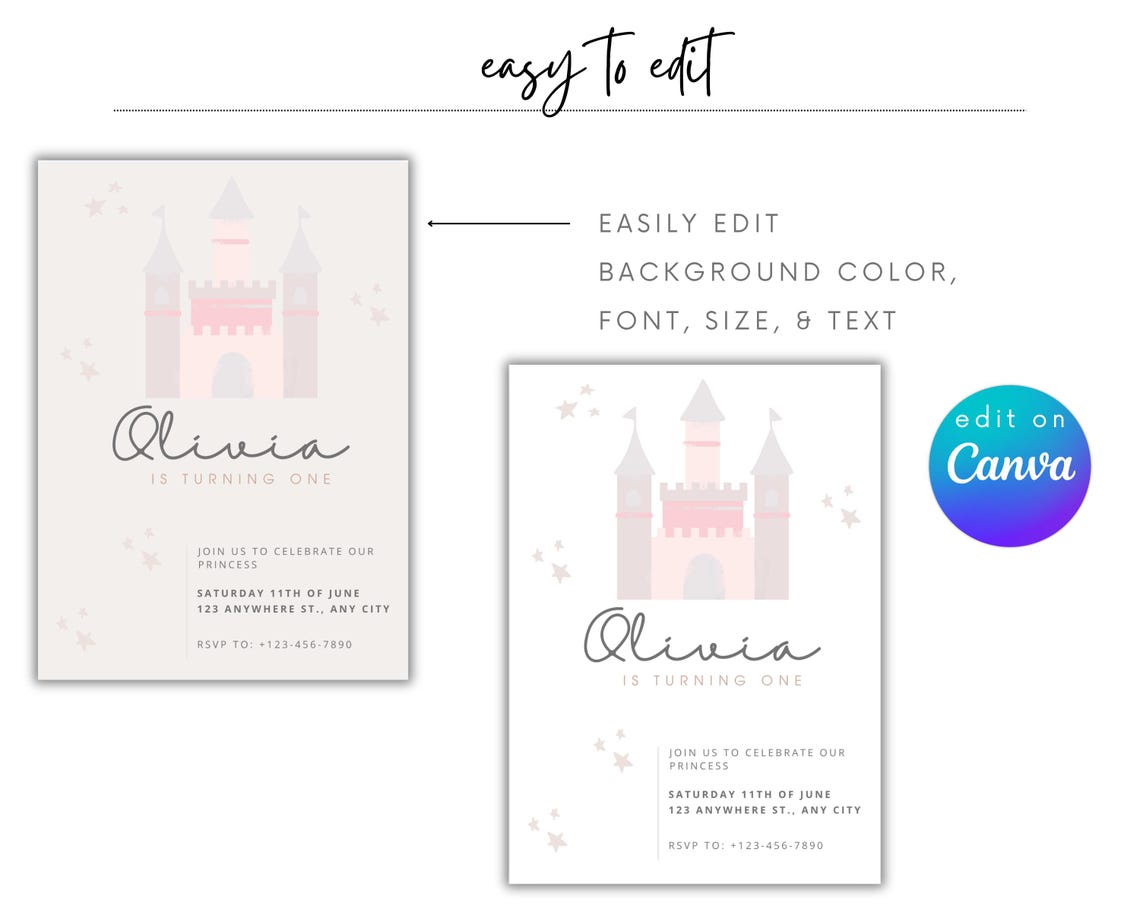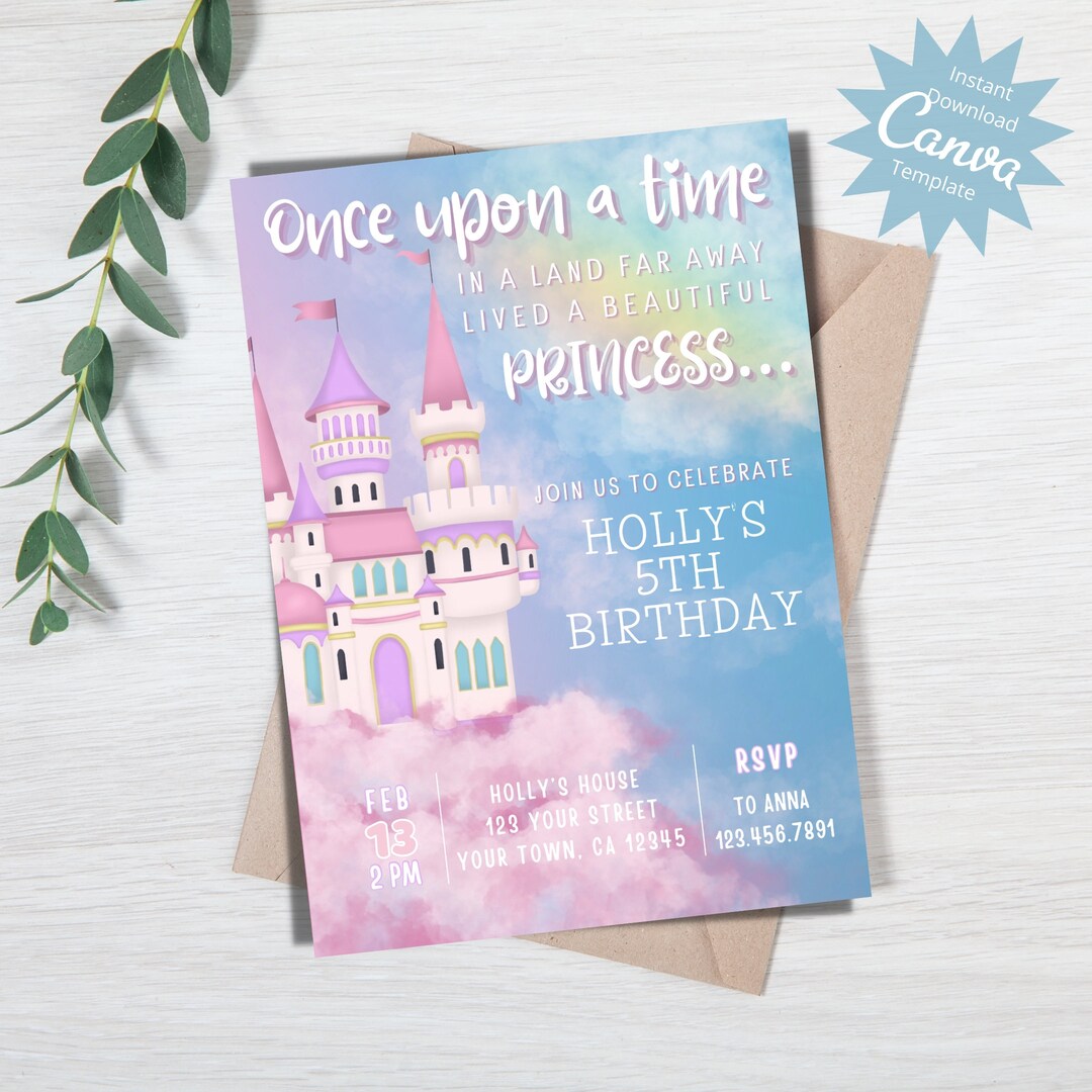 Editable Castle Princess Birthday Invitation – Canva Template | Custom ...