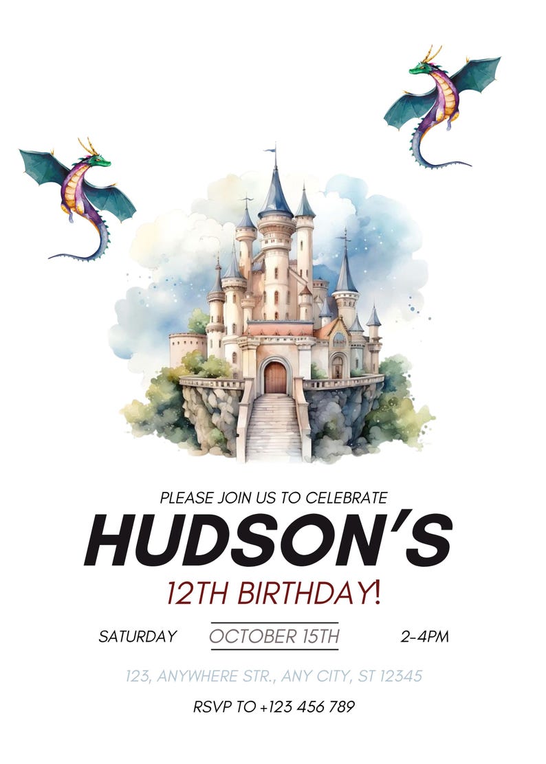 Castle Birthday Invitation: Hand-drawn Design, Editable in Canva (PDF ...