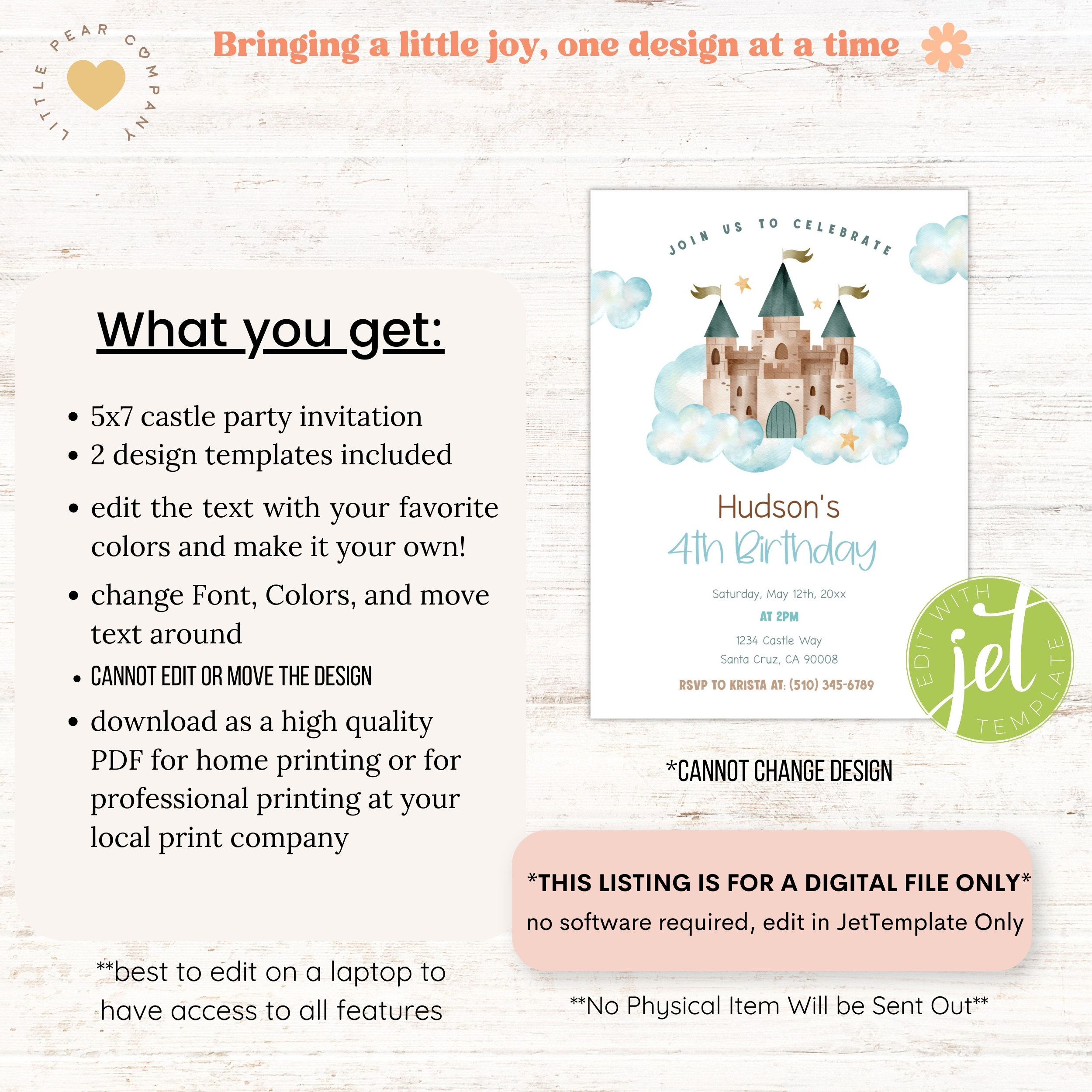 Fully Editable Canva Magical Castle Birthday Invitation Template - Etsy