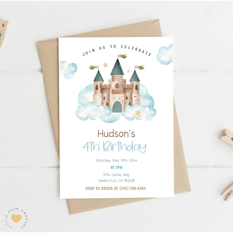 Castle Birthday Invitation, Modern and Simple Child Party Invitation ...