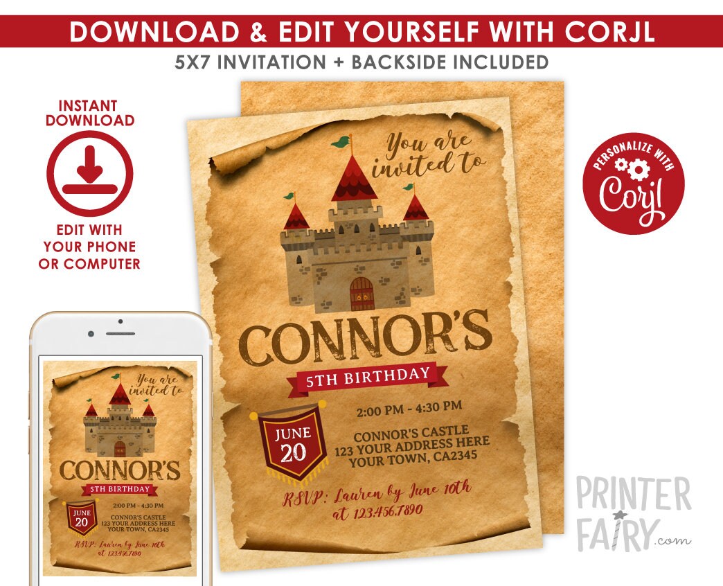 Medieval Castle Birthday Invitation EDITABLE Castle - Etsy