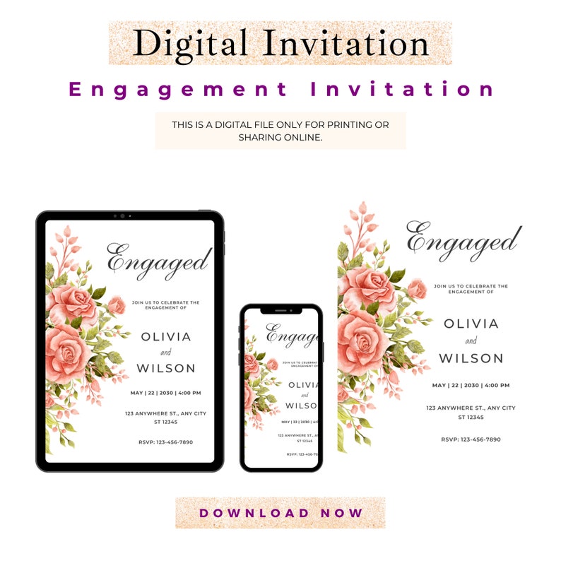 Editable Engagement Invitation, Digital Party Invite - Etsy