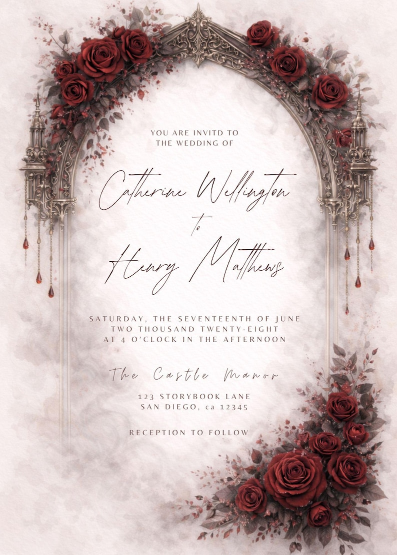Editable Wedding Invitation Template, Floral, Dark Romance, Romantic ...