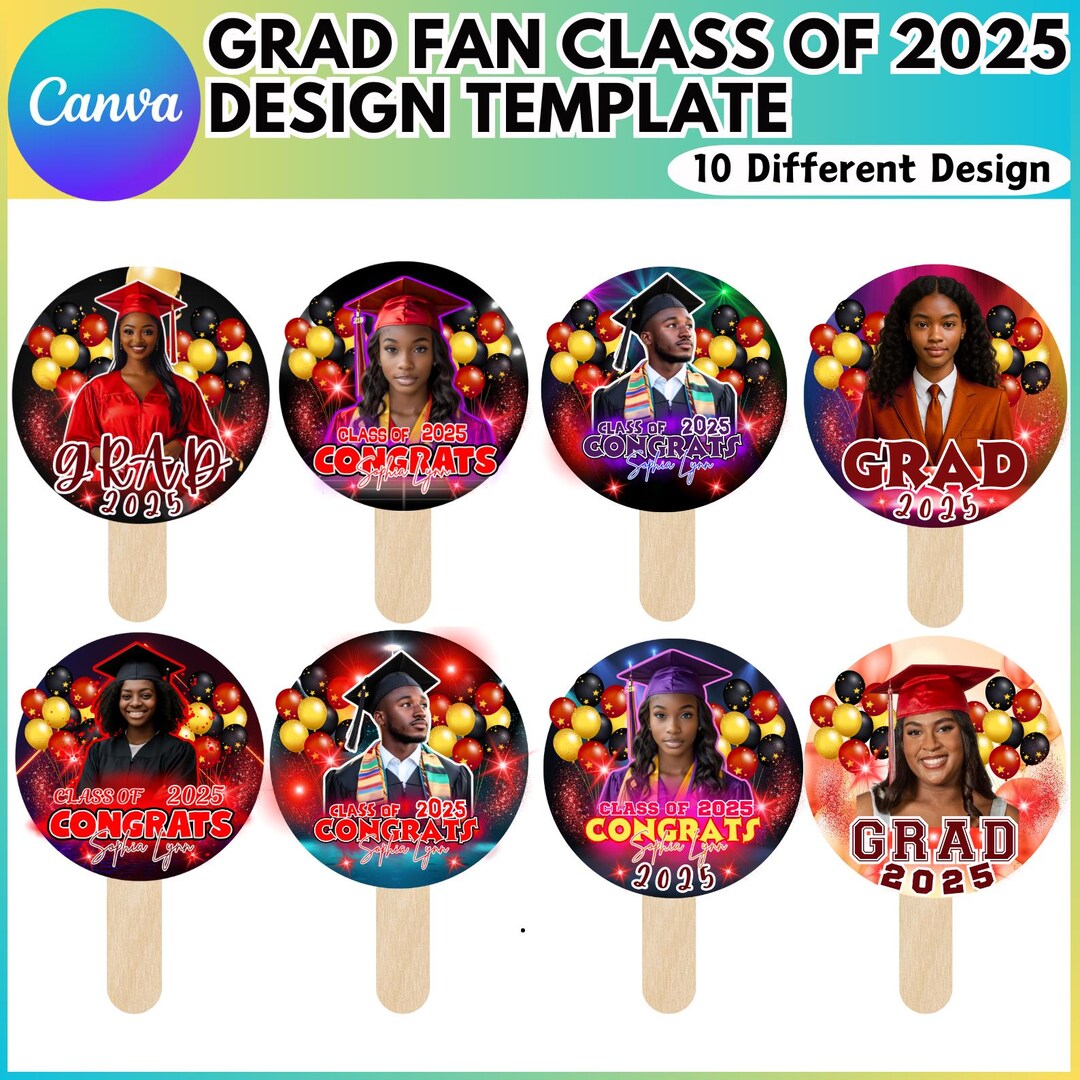 Grad Clack Fan Template | Graduation Fans Canva Template – Set of 5 ...