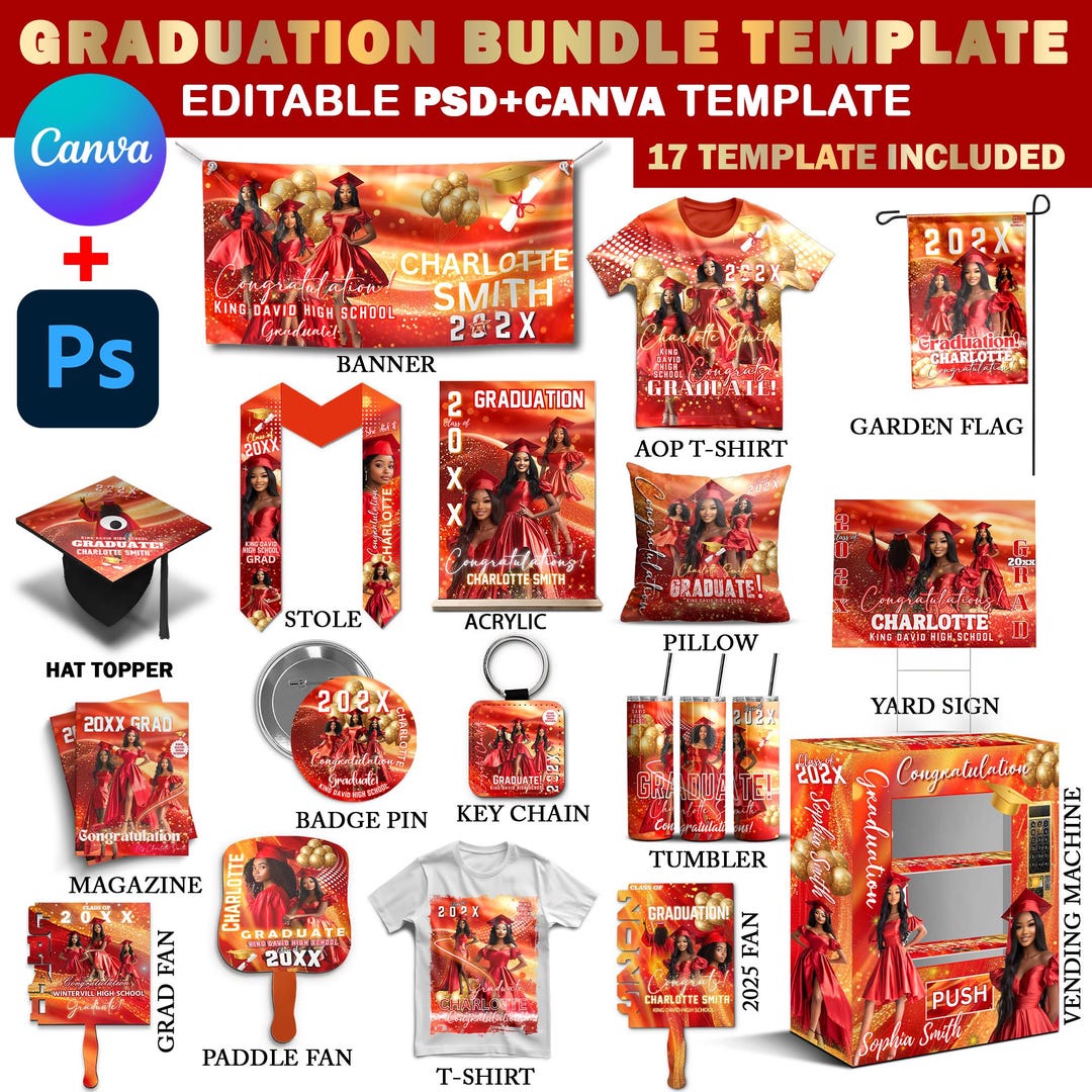 Graduation Design Bundle 2025, Editable Graduation Sublimation Pack ...