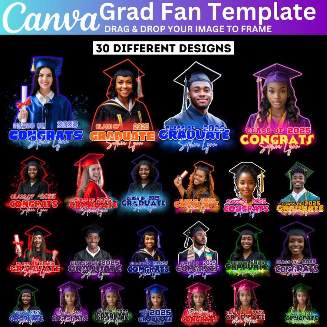 Grad Fan Templates, Graduate 2025 Bundle, Canva Editable Template, Grad ...