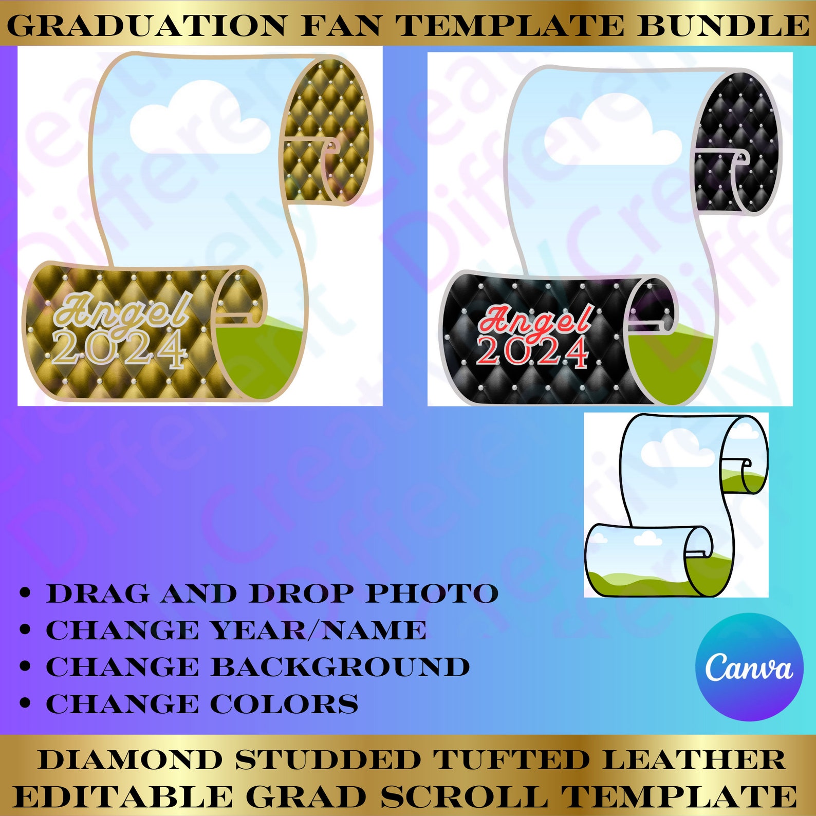 Diamond Tufted, Grad Scroll Template Bundle Graduation Fan Template ...