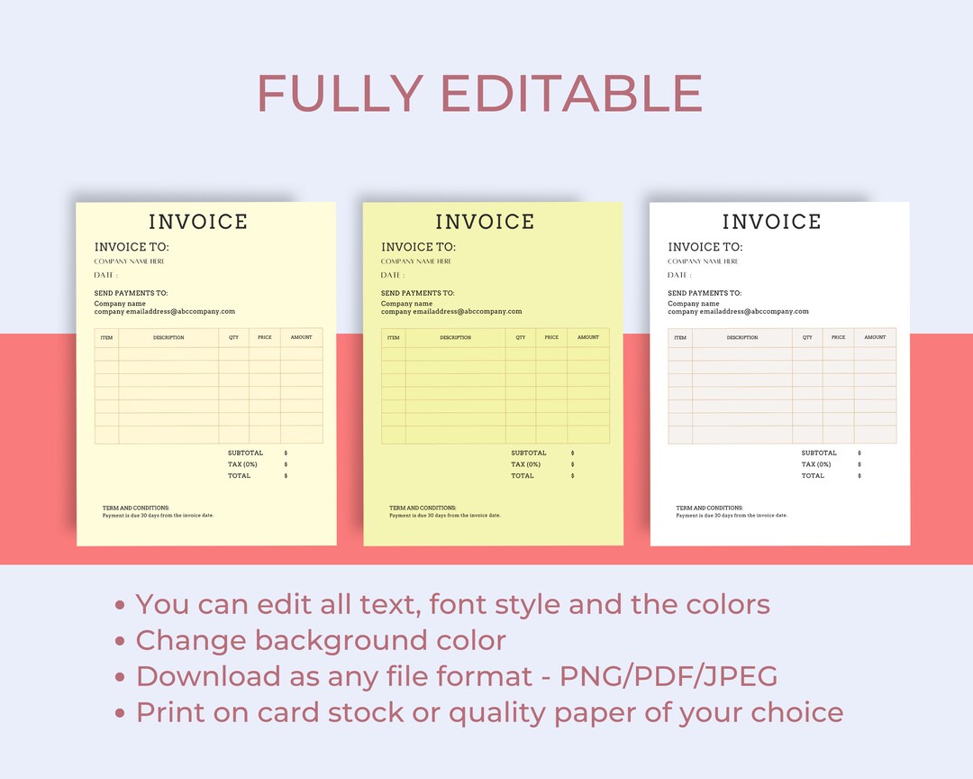 Editable Invoice Template, Instant Download, Invoice Form, - Etsy