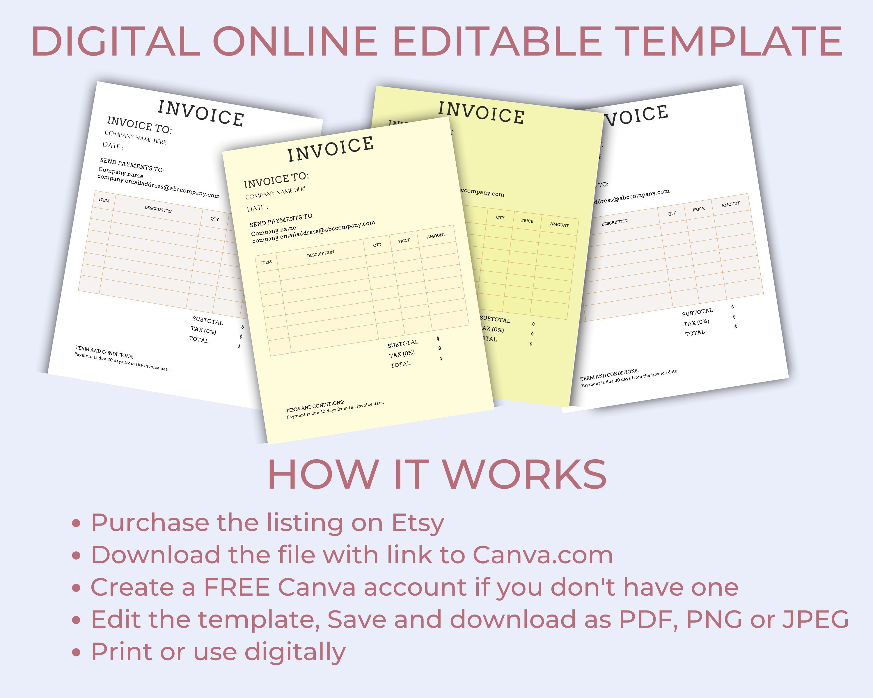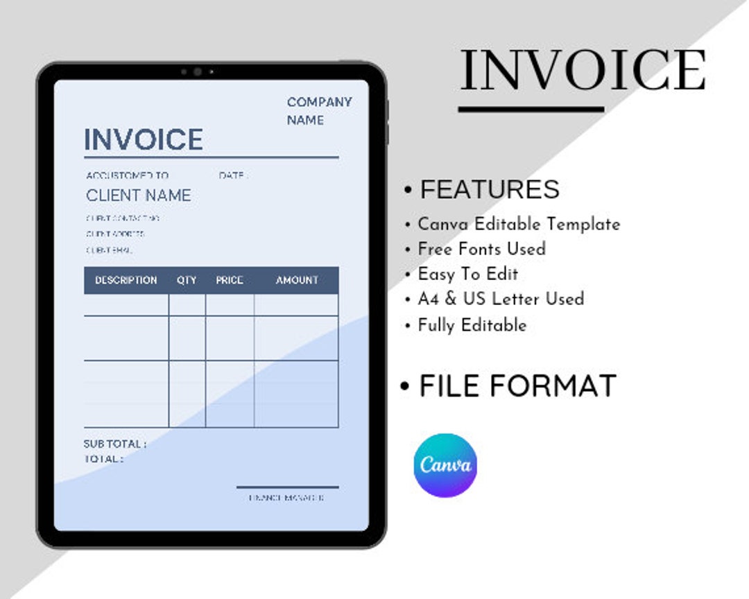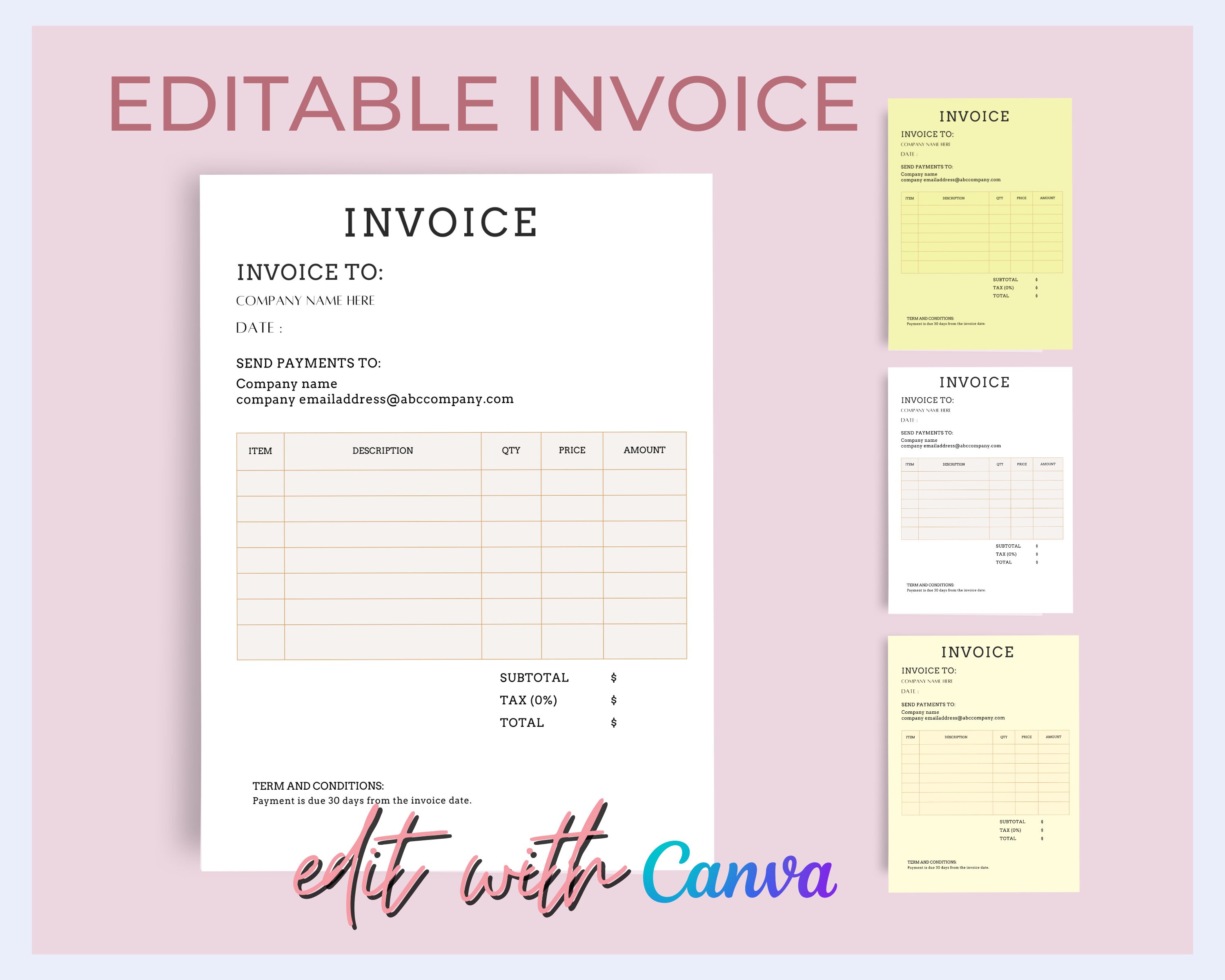 Editable Invoice Template: Printable Small Business Design (canva) - Etsy